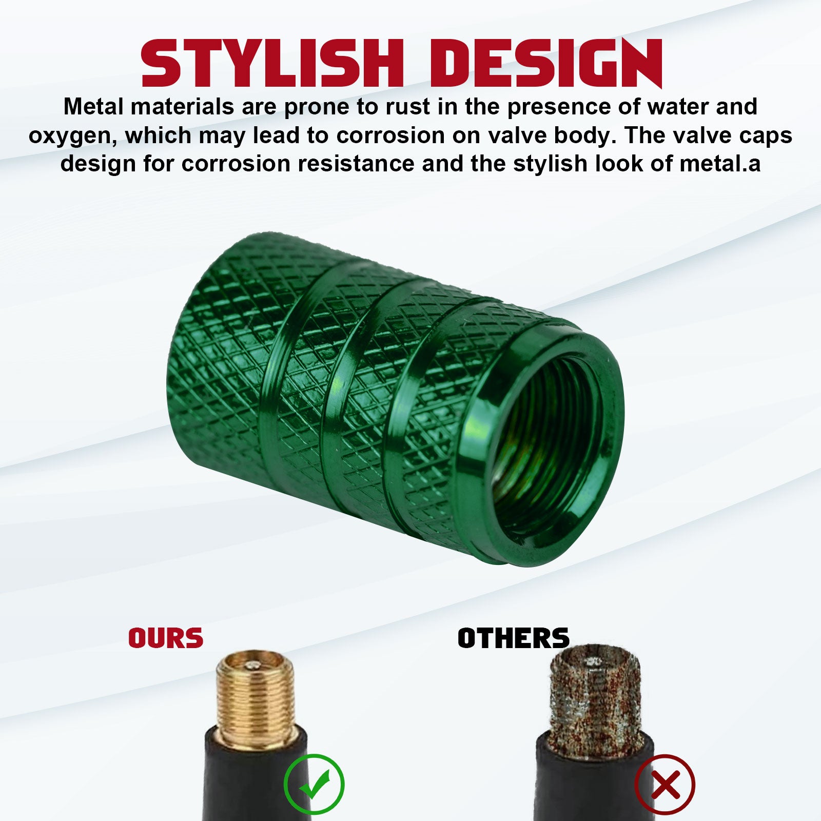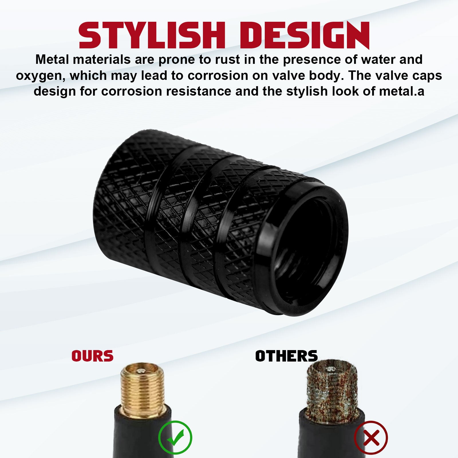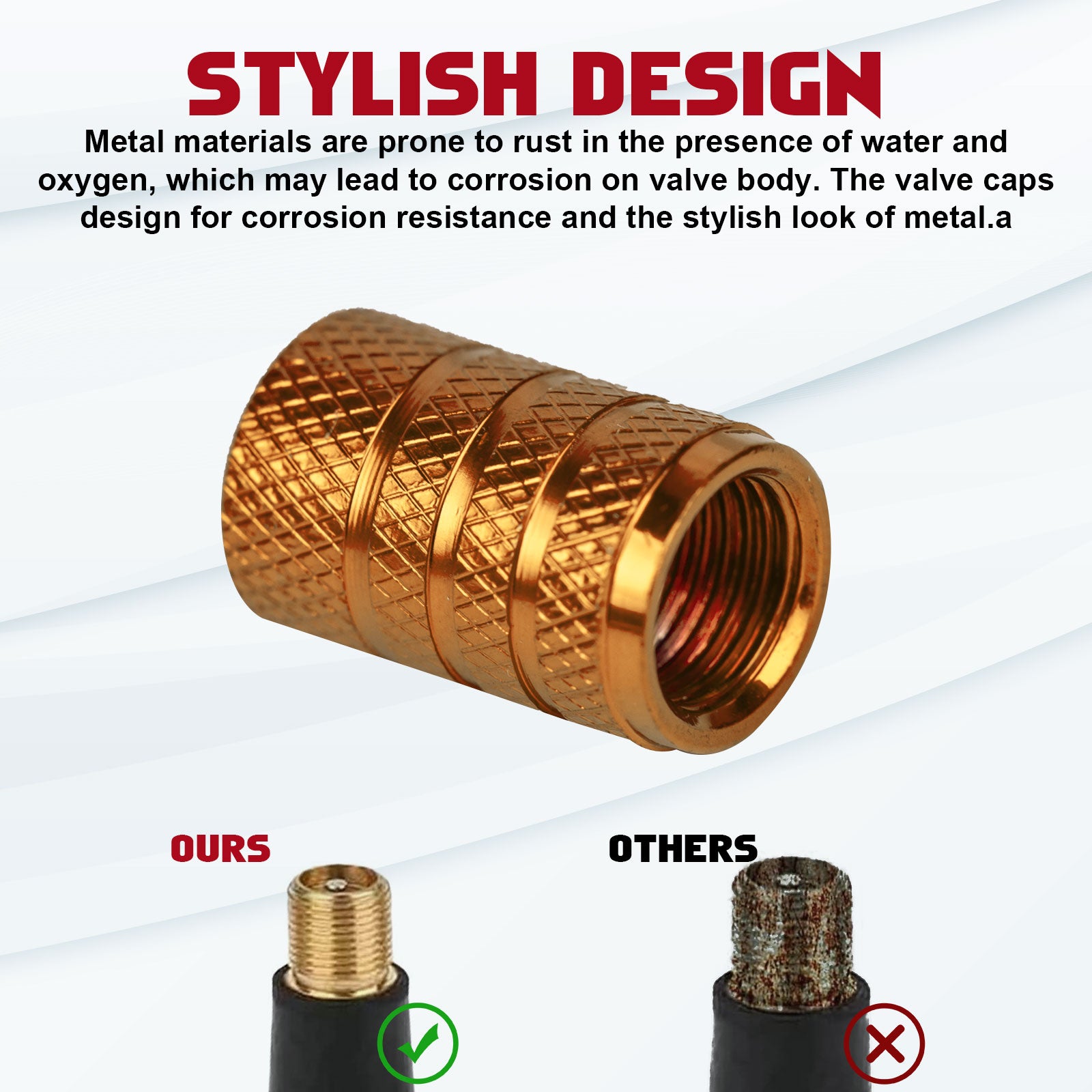Stylish Design: Metal materials are prone to rust in the presence of water and oxygen, which may lead to corrosion on valve body. The valve caps design for corrosion resistance and the stylish look of metal.