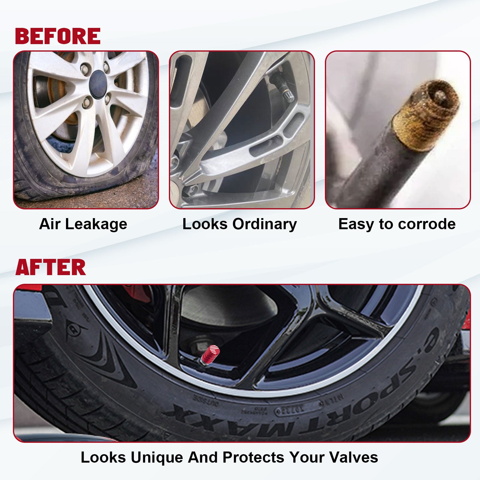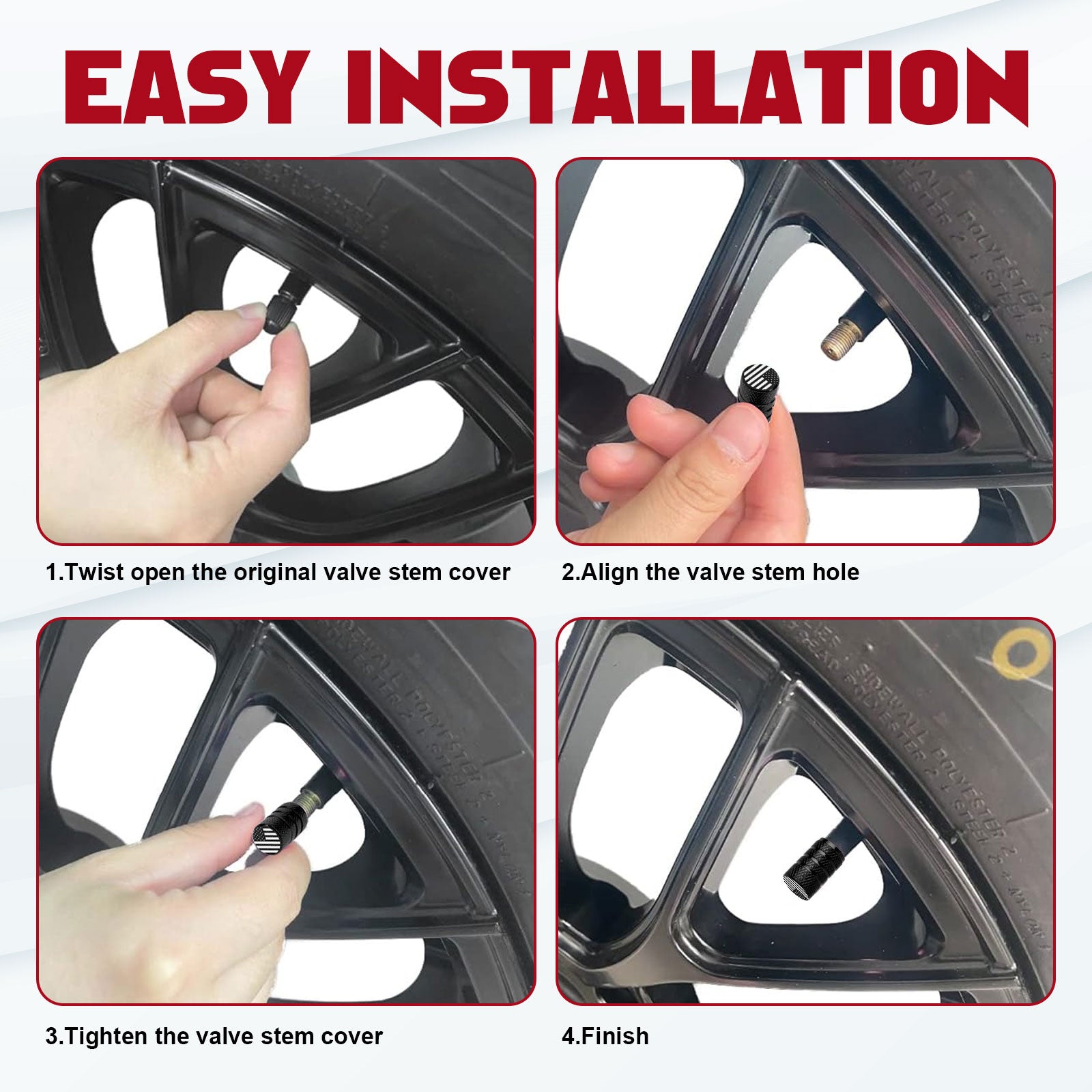 Easy Installation: 4pcs valve stem caps, it is easy to twist when install or remove. Beautiful appearance, fits vehicles of various colors.