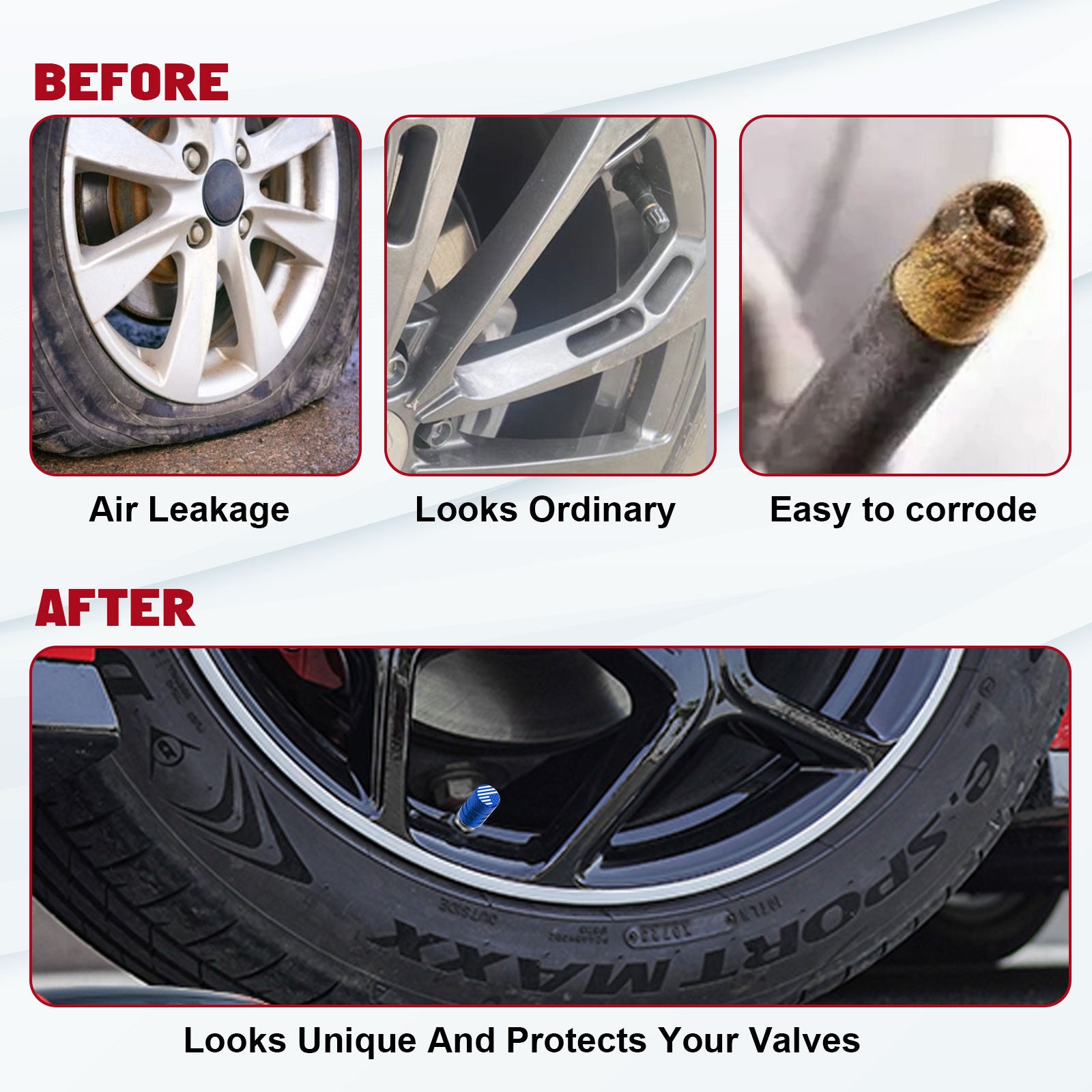 Premium Material: The Valve Stem Caps are made of high-grade, light-weight anodized aluminum alloy and powder coated finish for maximum strength and durability, surface anodic oxidation treatment makes the color brighter.