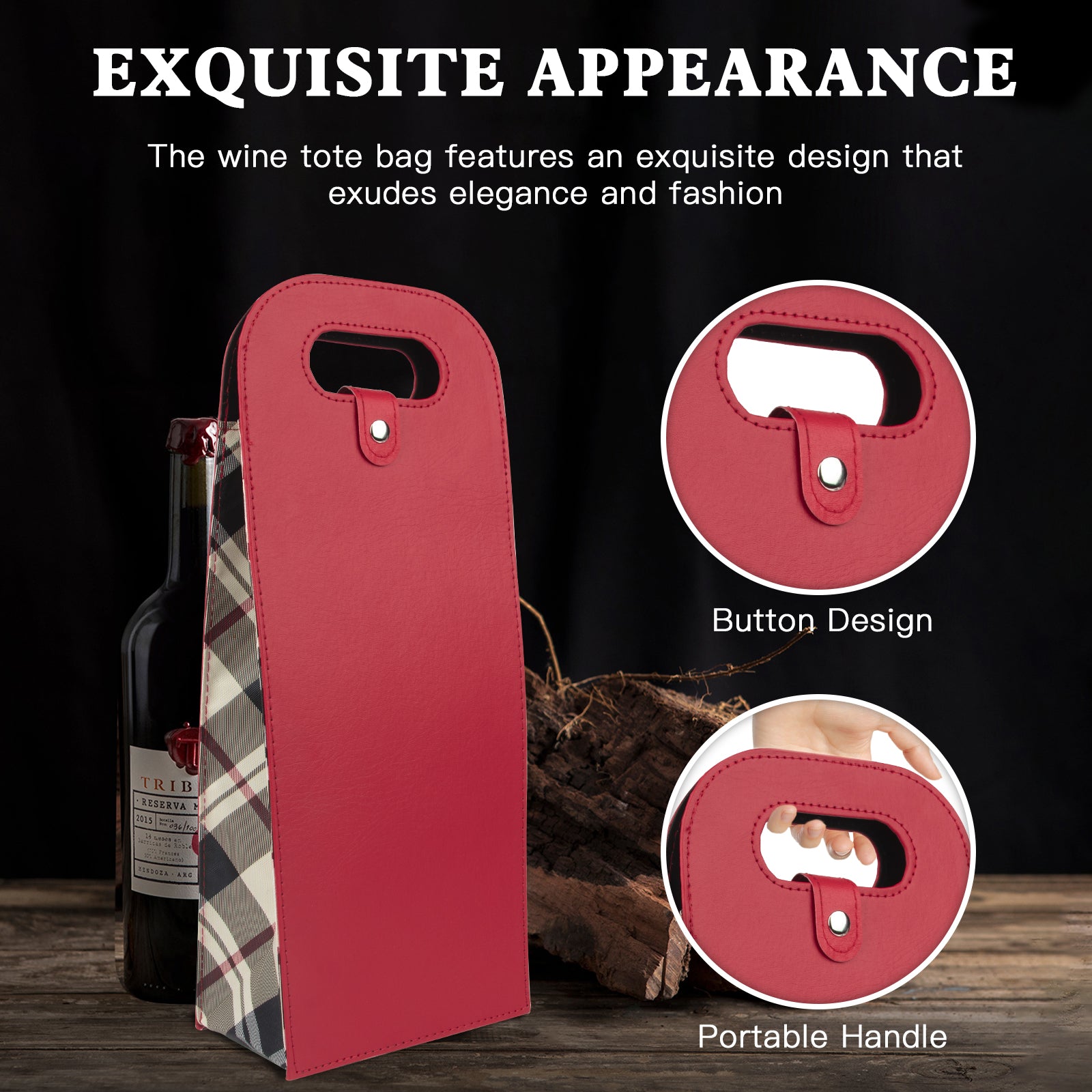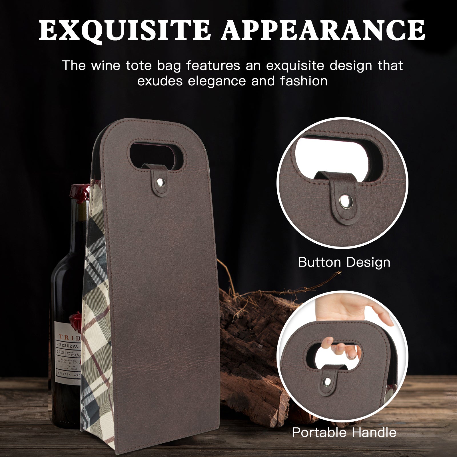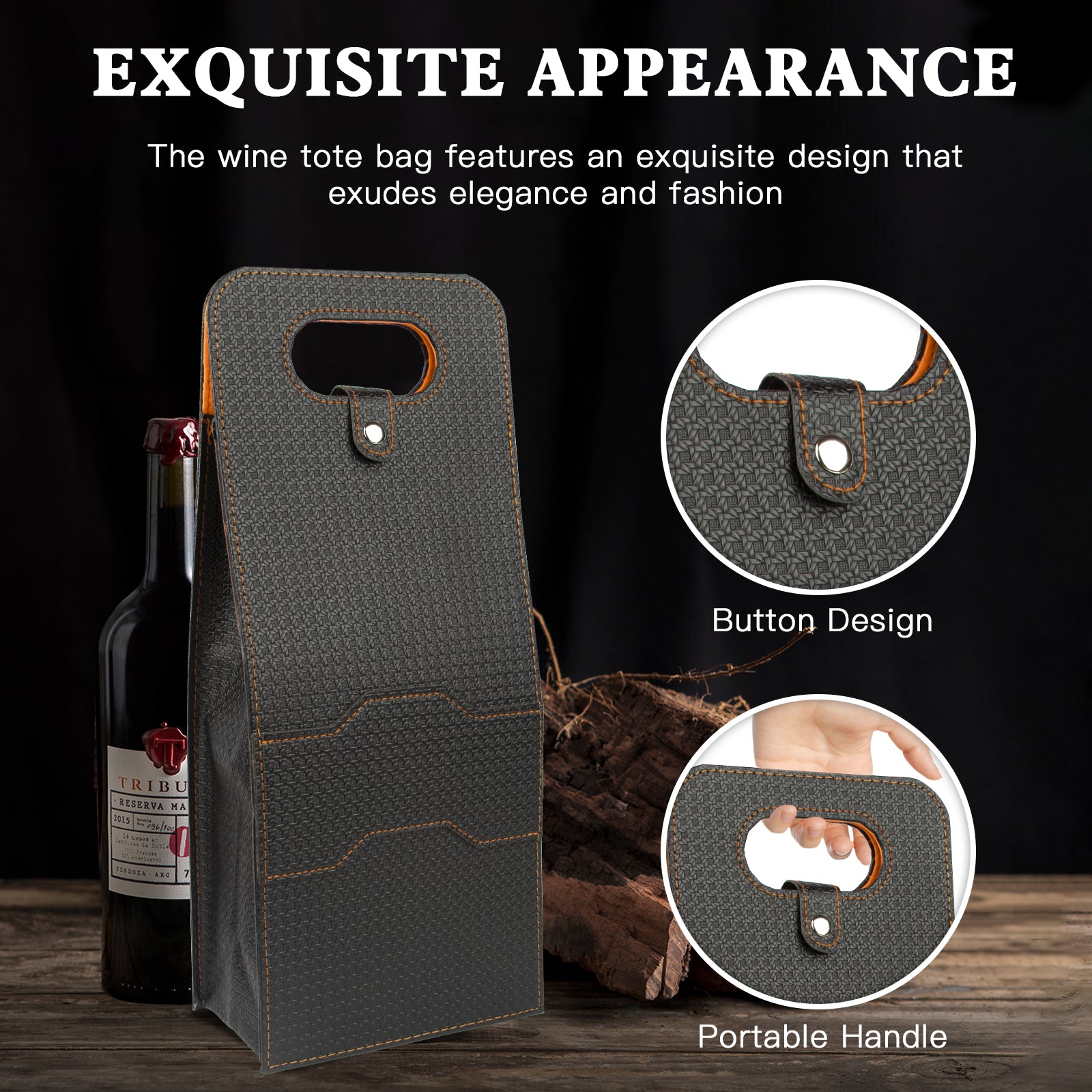 Exquisite Appearance: The wine tote bag features an exquisite design that exudes elegance and fashion. The handles and top buttons not only safeguard the wine but also make it easy to carry and transport.