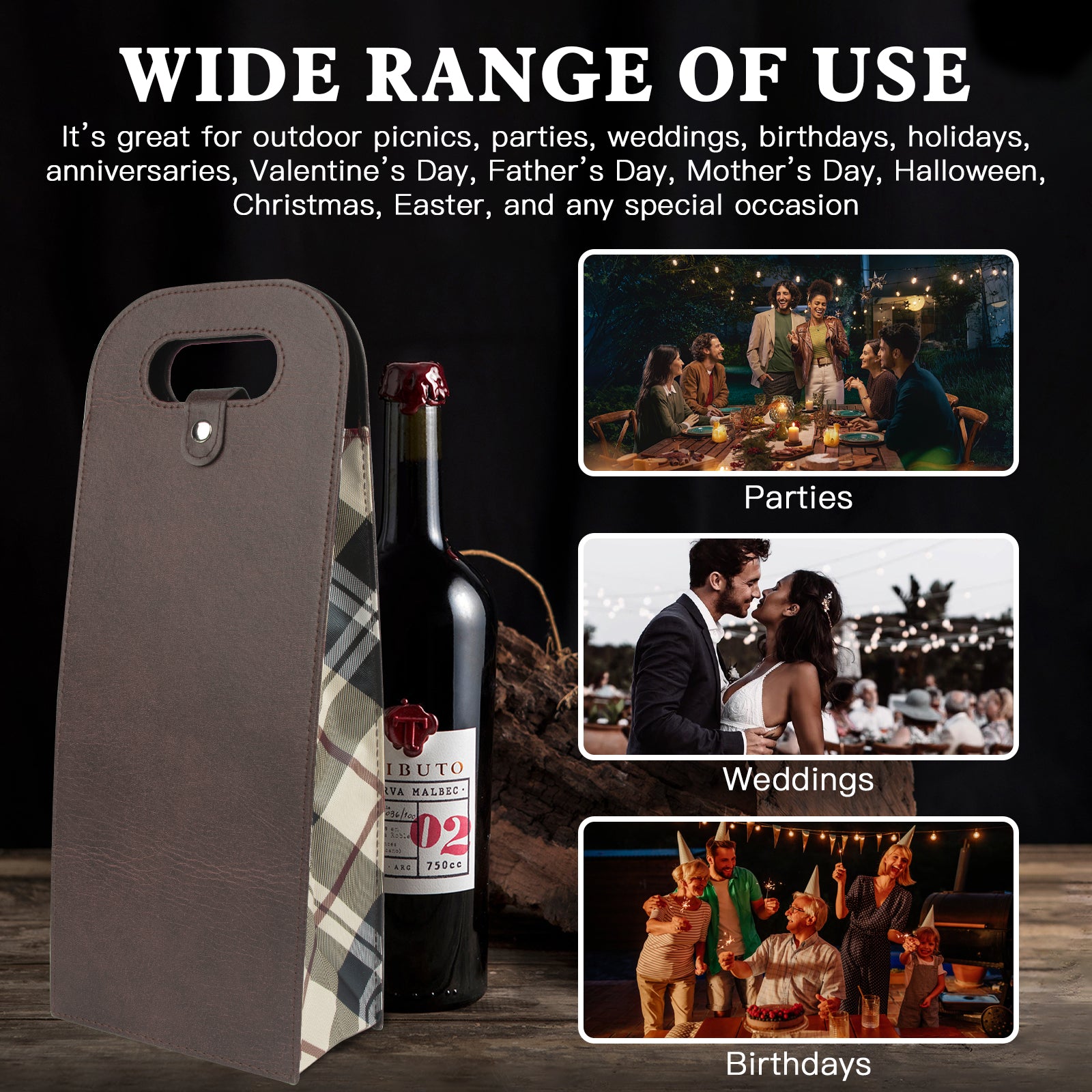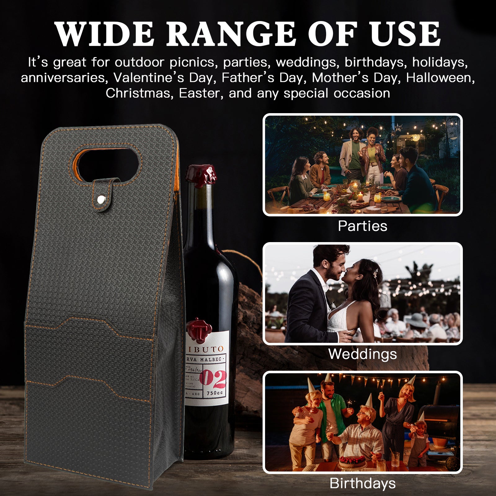 Wide Applications: Ideal for storing and transporting wine bottles securely, this bag is a perfect gift for family and friends. It’s great for outdoor picnics, parties, weddings, birthdays, holidays, anniversaries, Valentine’s Day, Father’s Day, Mother’s Day, Halloween, Christmas, Easter, and any special occasion