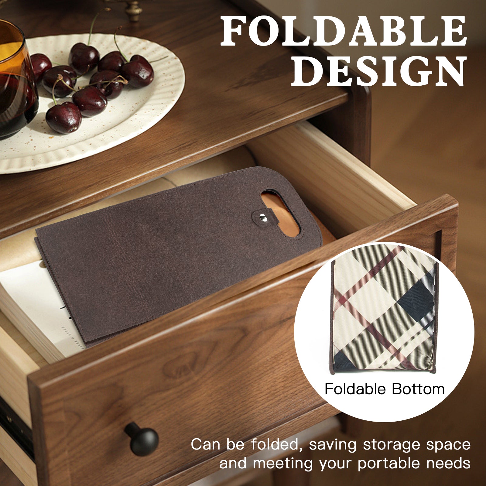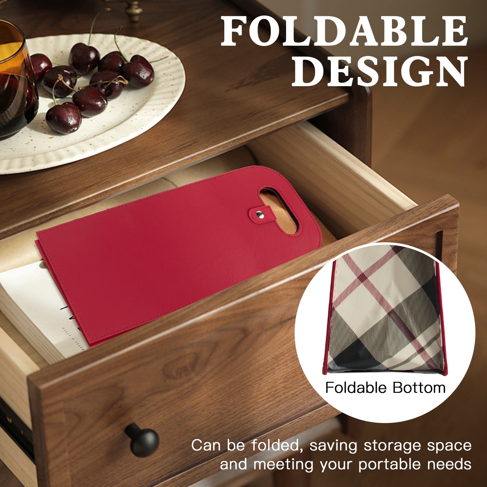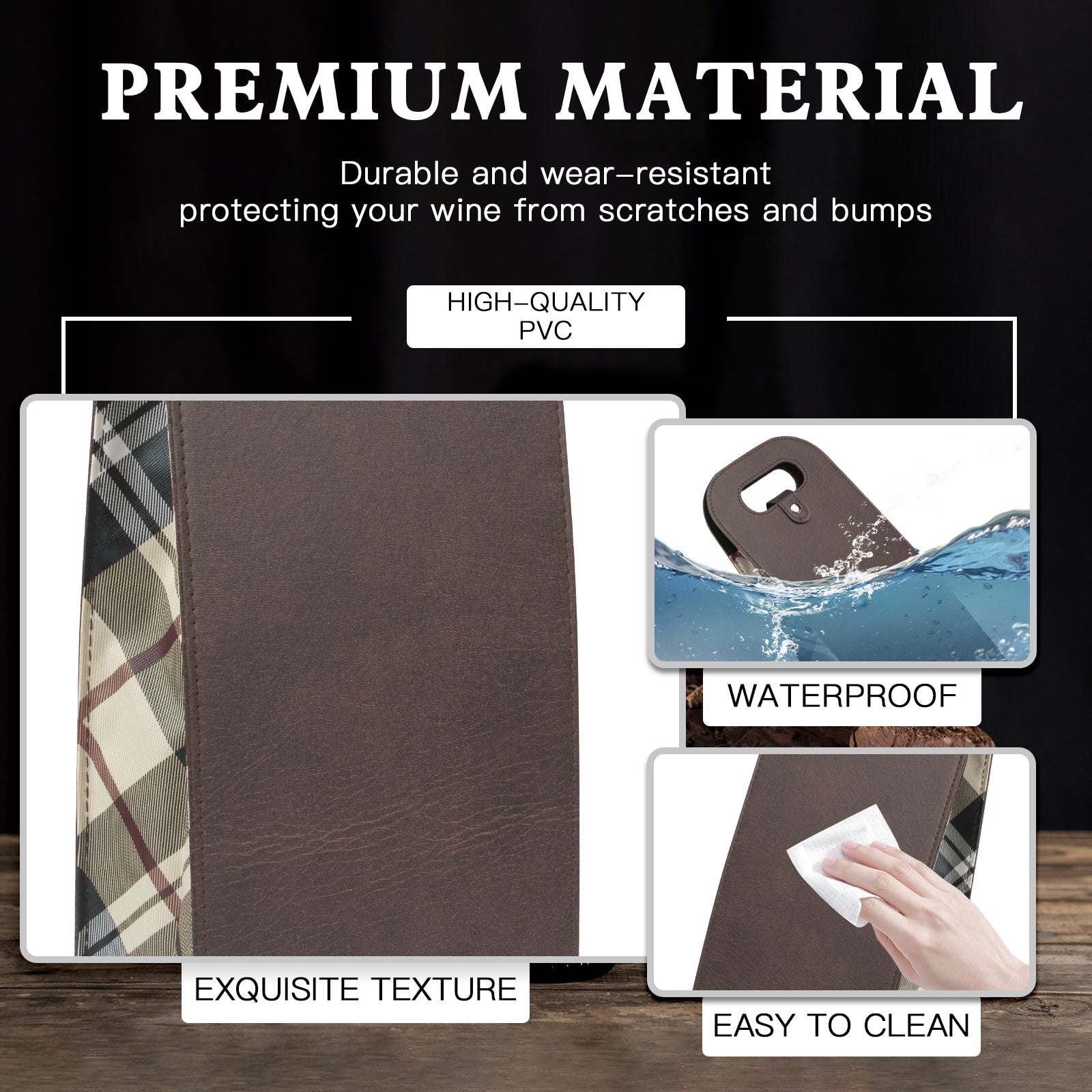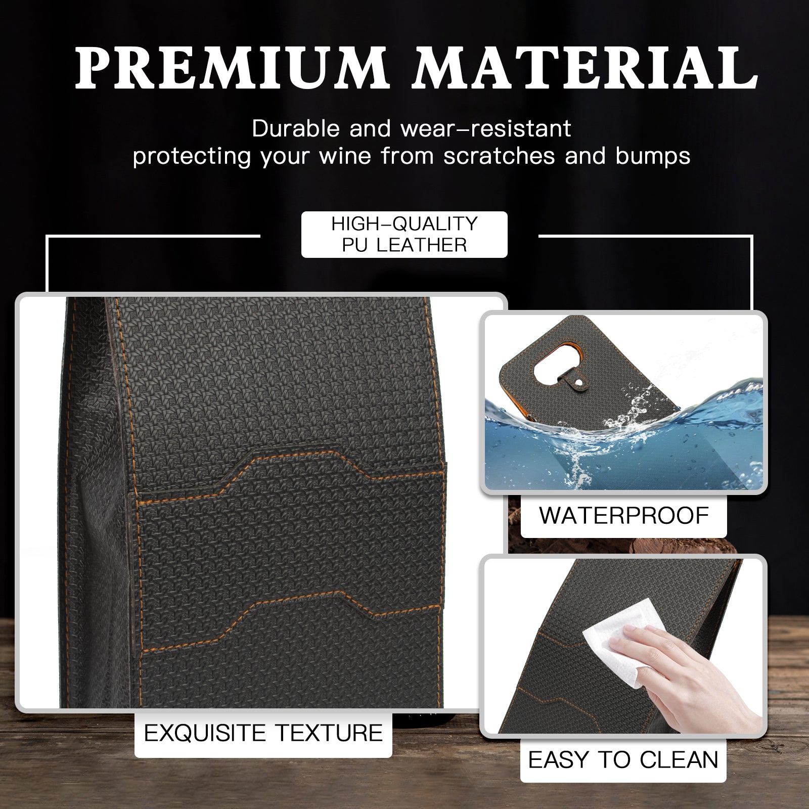 Foldable Design: Carefully cut and stitched, our leather wine bottle bag can be folded, saving storage space and meeting your portable needs. The front, back, and bottom are thick, preventing deformation even when folded for long periods.