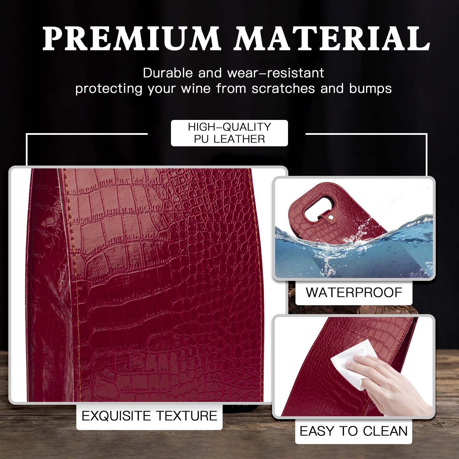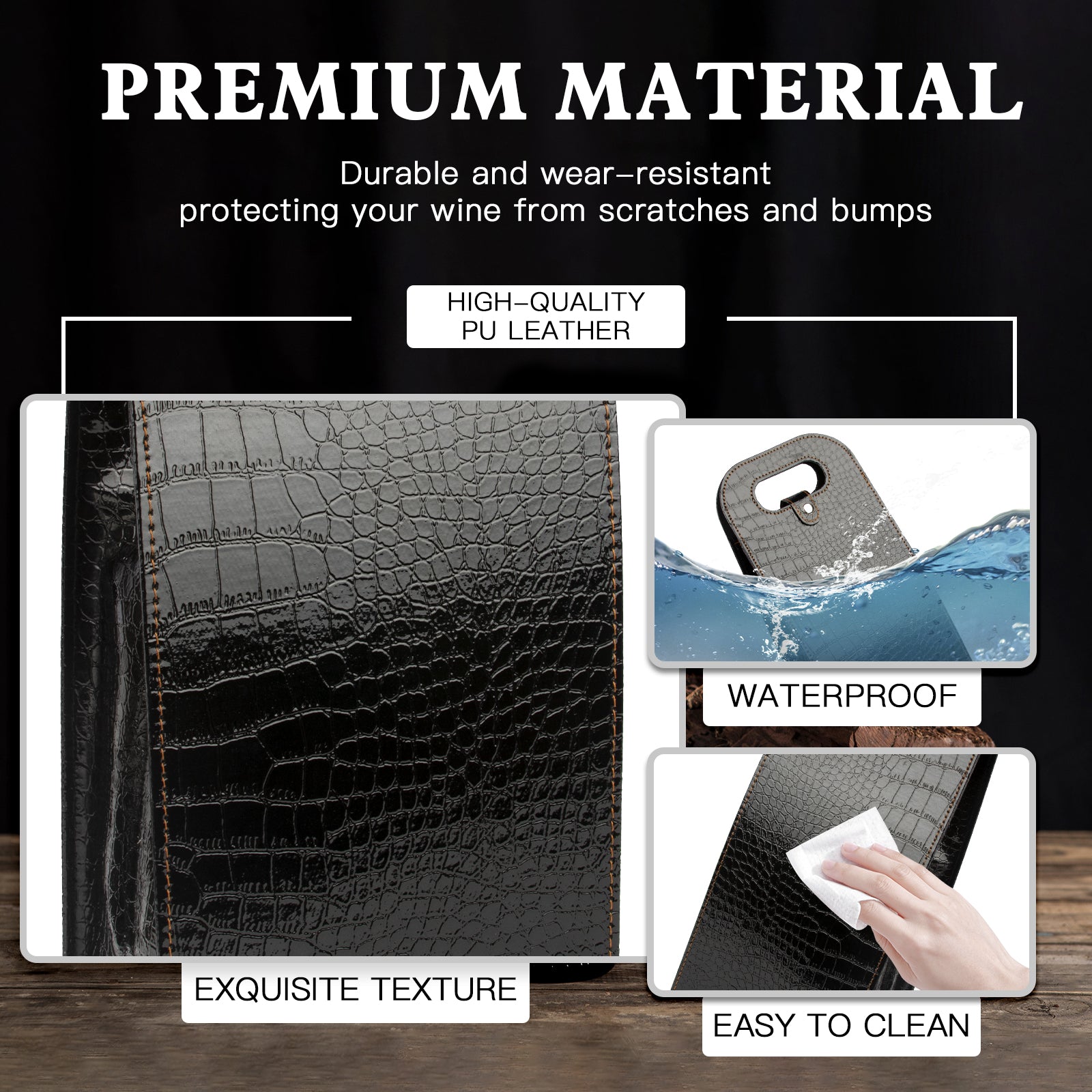 • 2-Bottle Leather Wine Tote Bag Protector Champagne Gift Bag with Handle For Gift
