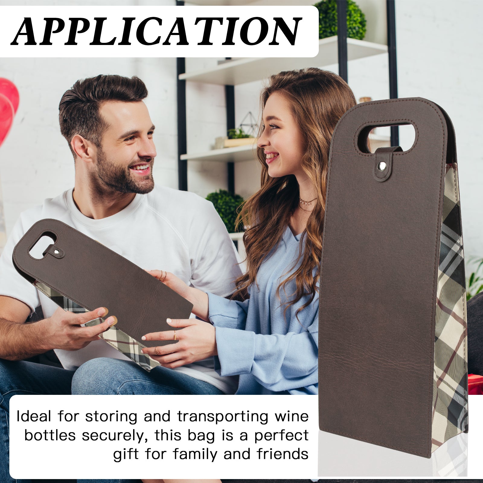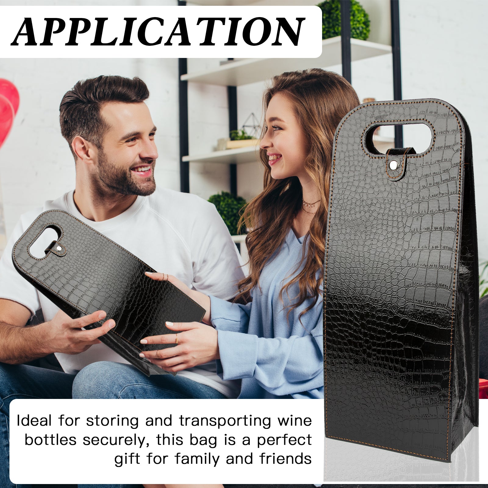 2-Bottle Leather Wine Tote Bag Protector Champagne Gift Bag with Handle For Gift