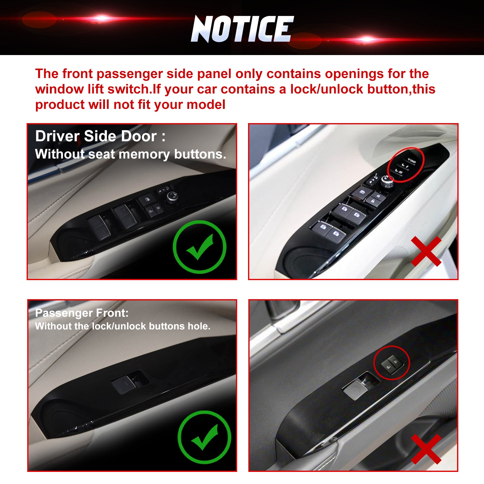 [Applicable Model] Compatible with Toyota Camry 2018-2025 Without Memory Seat Buttons. Please ensure the part of your car like our picture shows.