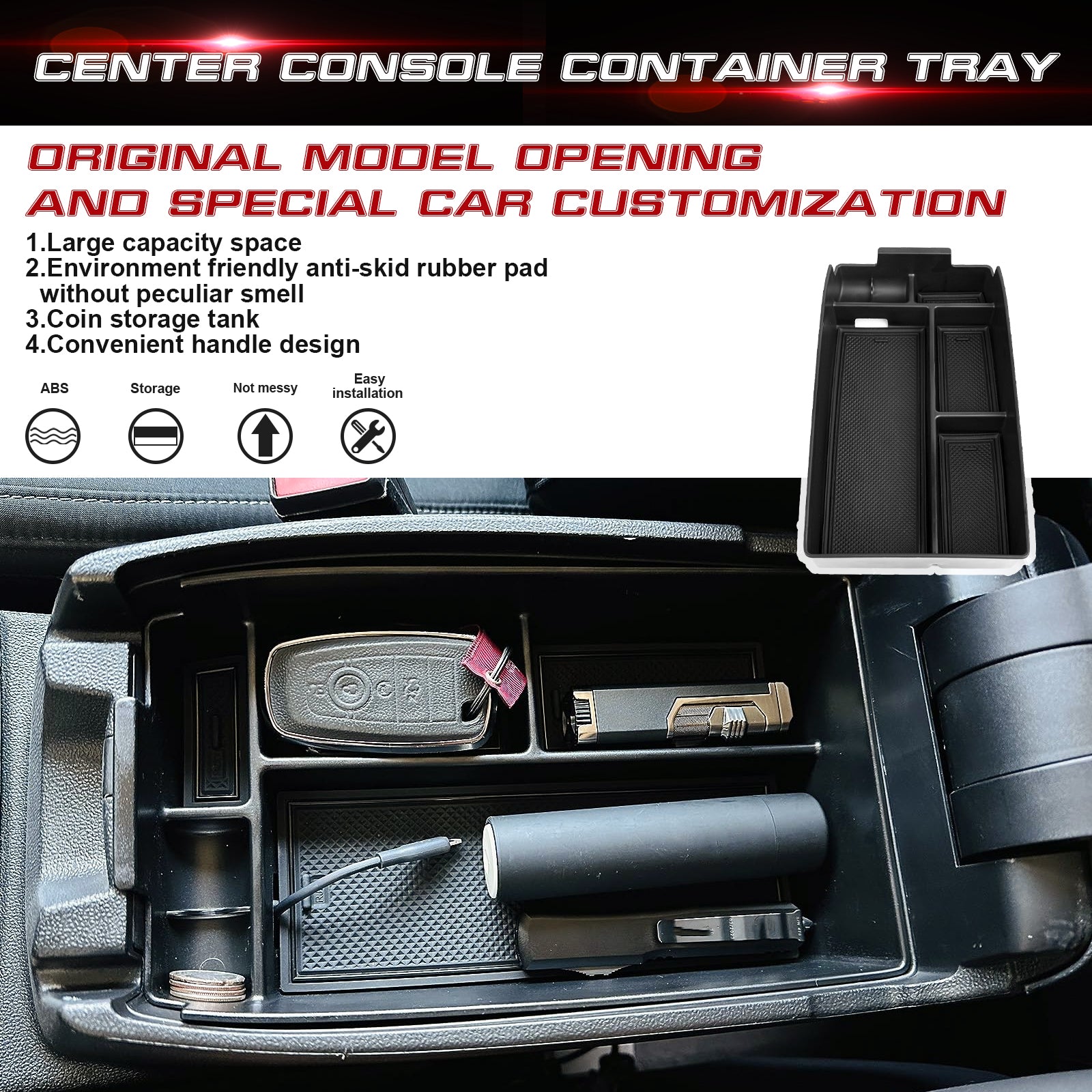 Premium Quality: This center console organizer is made of high quality ABS which is durable, waterproof, and not easy to deform. The removable rubber cushion pad prevents things from rolling around and rattling