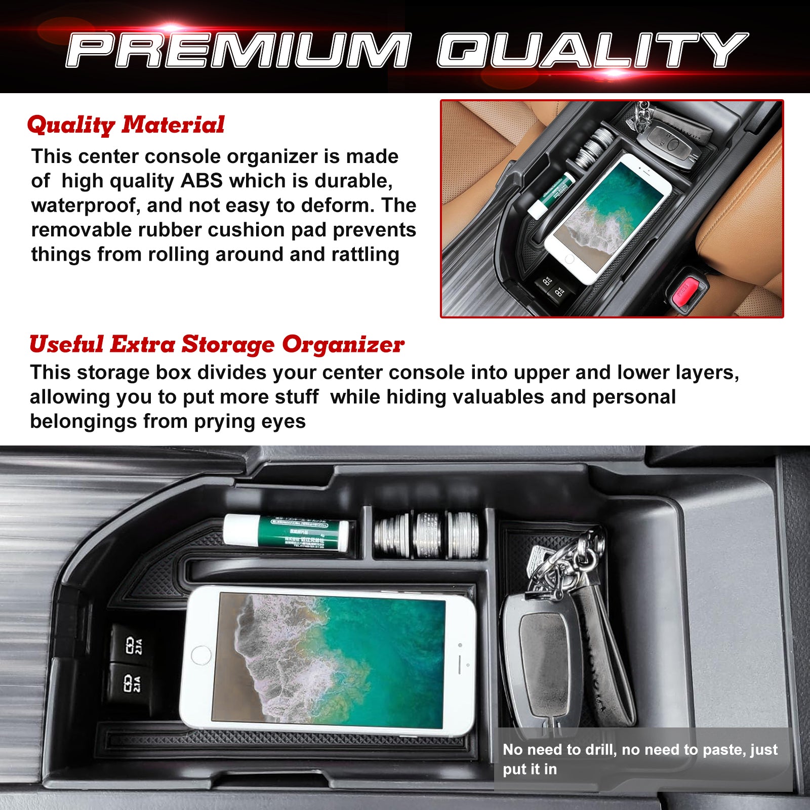 Premium Quality: This center console organizer is made of high quality ABS which is durable, waterproof, and not easy to deform. The removable rubber cushion pad prevents things from rolling around and rattling