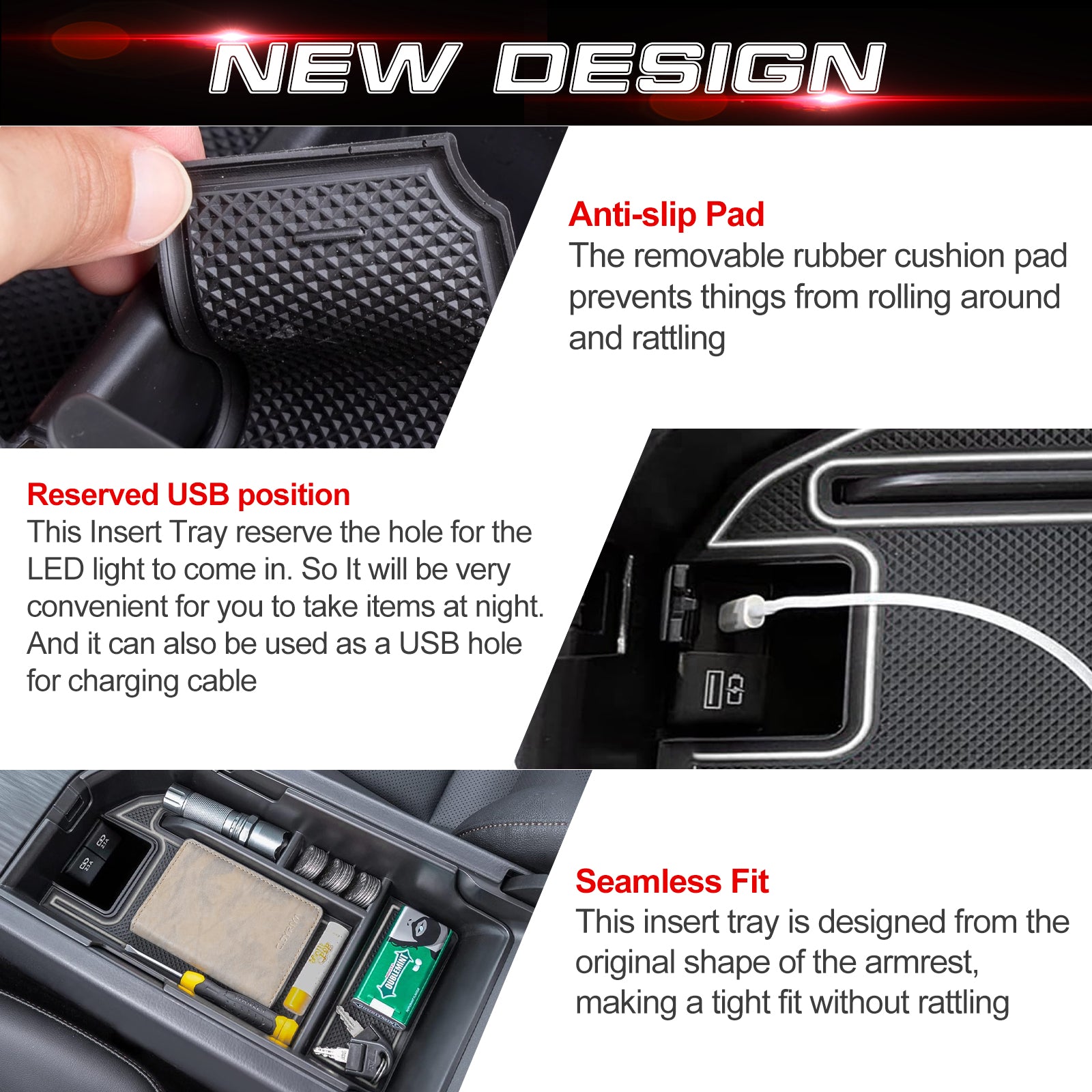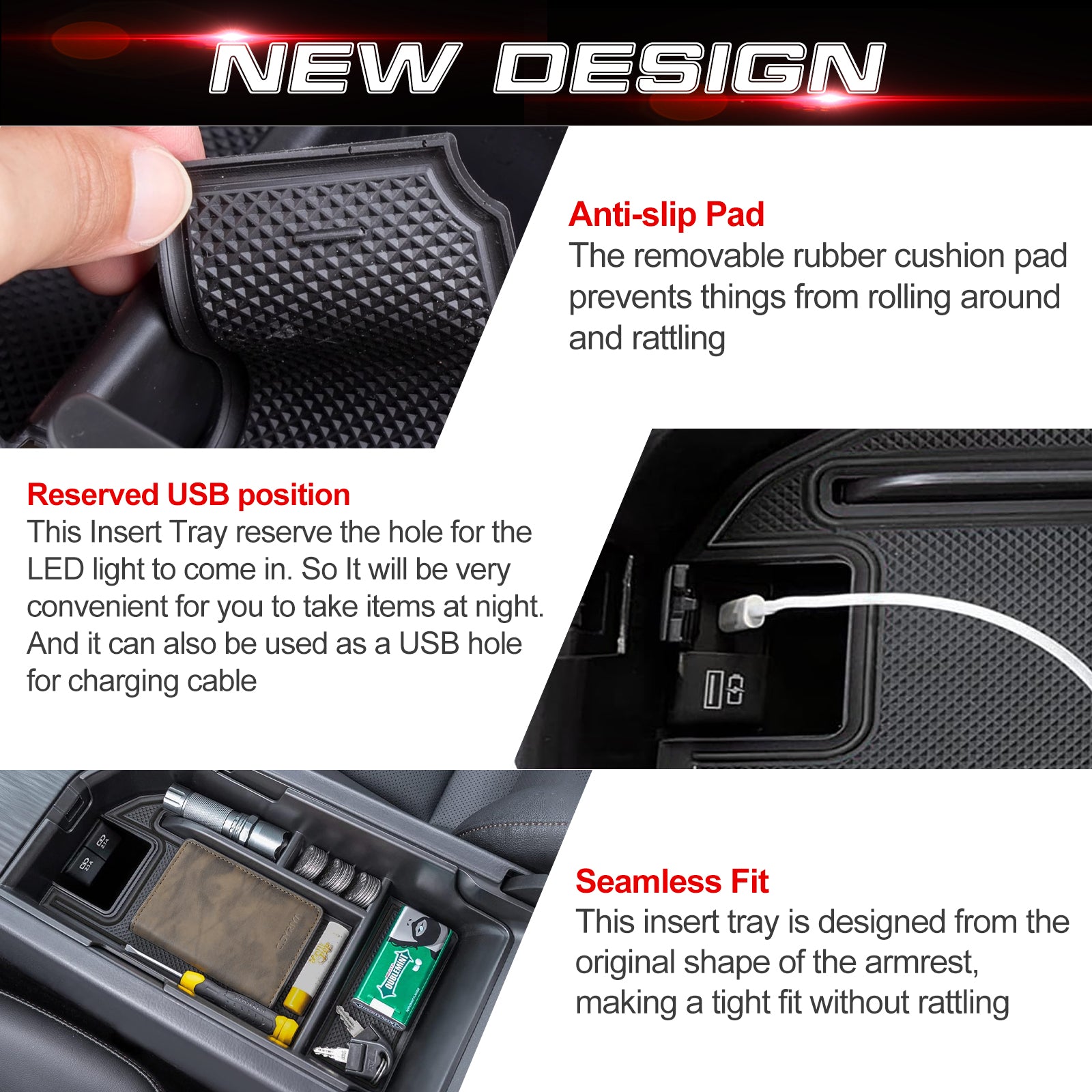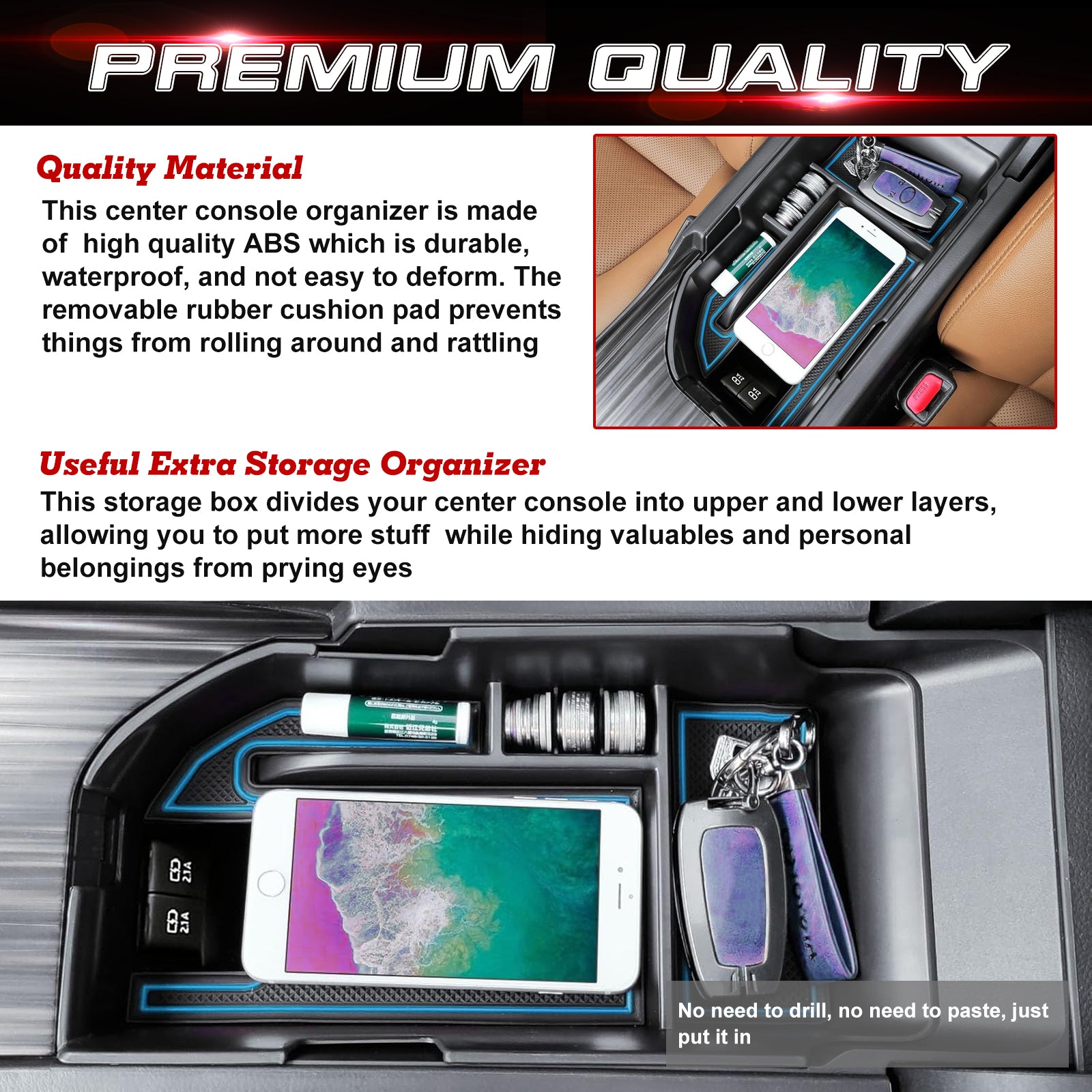 Perfect Design: Help you wipe out the mess on your console box and create a neat and clean environment. Various items can be placed in different areas, keep your center console in a more organized shape so that everything is easier to find when needed. Reserved USB port do not affect charging use.