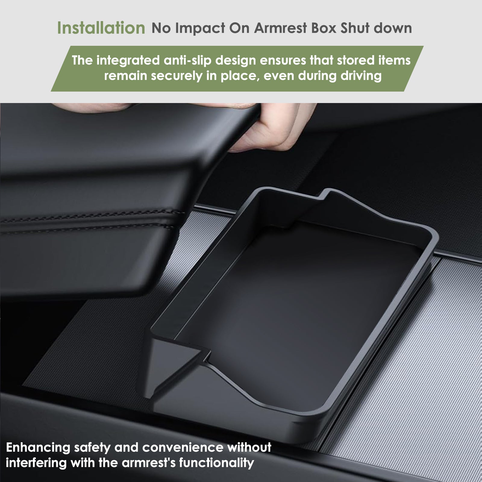 【Non-Slip Design】The integrated anti-slip design ensures that stored items remain securely in place, even during driving. It keeps your sunglasses and other items organized and within easy reach, enhancing safety and convenience without interfering with the armrest's functionality.