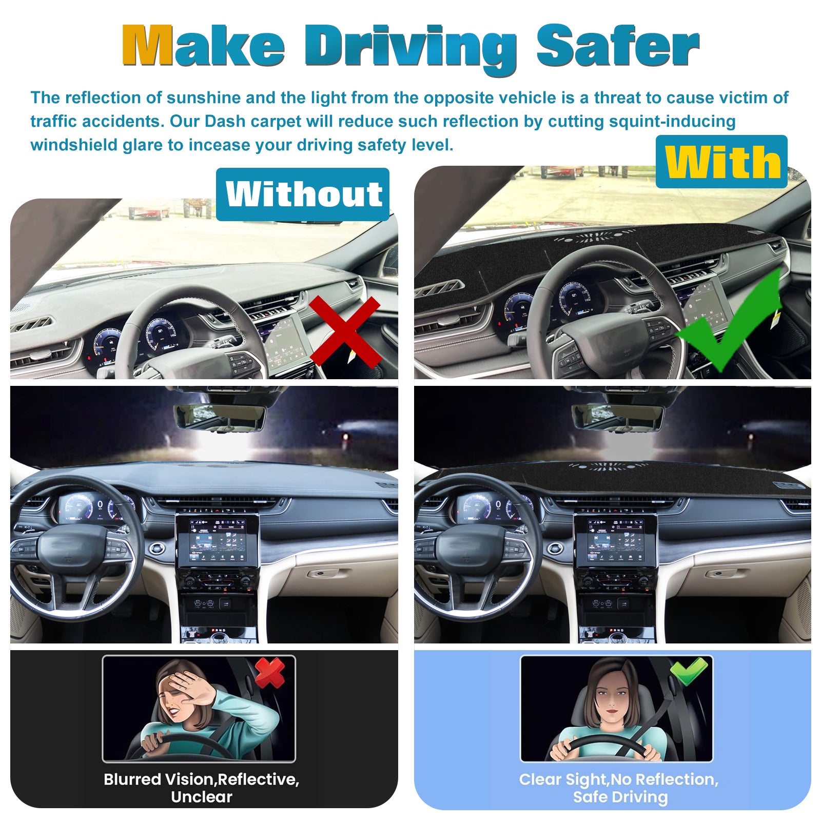 - The reflection of sunshine and the light from the opposite vehicle is a threat to cause victim of traffic accidents. Dash covers are a great way to reduce windshield glare. Our Dash carpet will reduce such reflection by cutting squint-inducing windshield glare to incease your driving safety level.