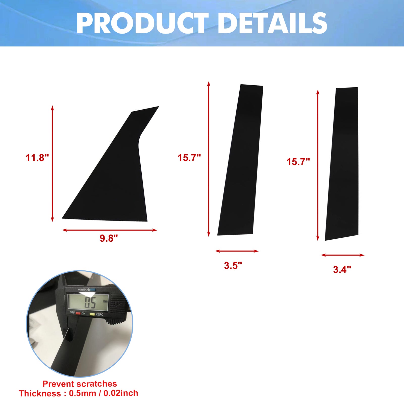 Premium Quality: These Pillar Posts Molding Protector Trims are made by pre-cut black PC mirror ABS material w/ UV coating and has an ultra long outdoor life even under extreme weather condition.