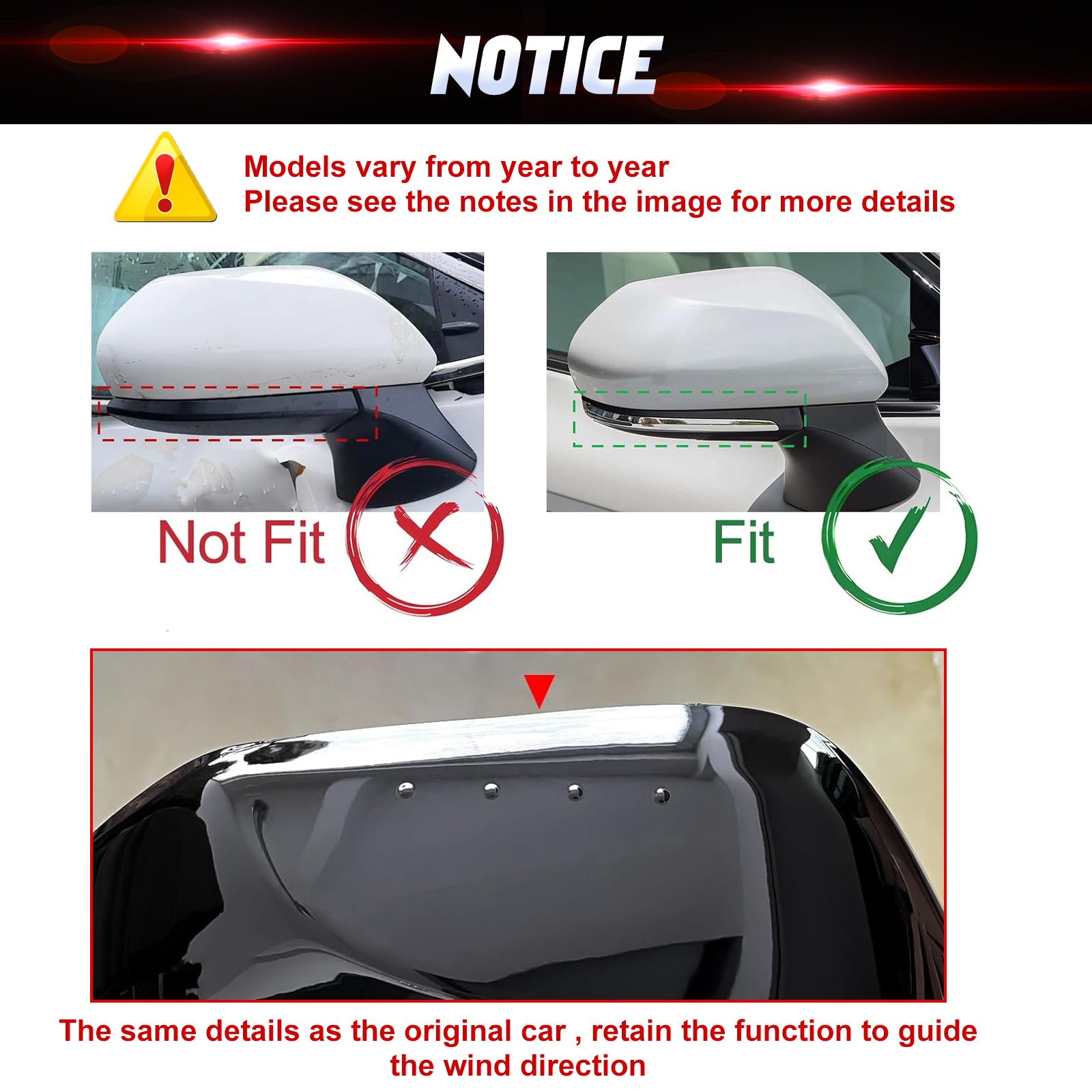 - 2 pieces of Rear View Mirror Side Molding Cover
