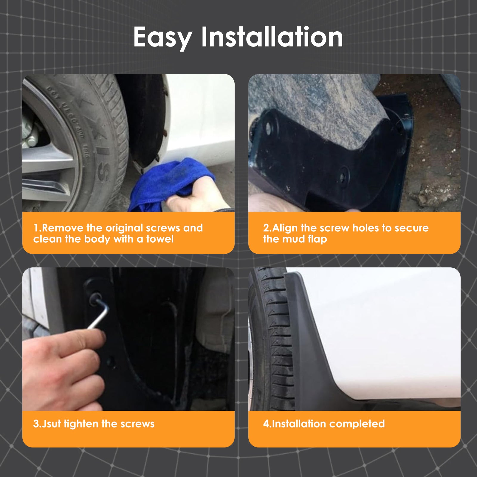 This listing features for 4 pieces of Front & Rear Flexible Mud Flap Splash Guard.