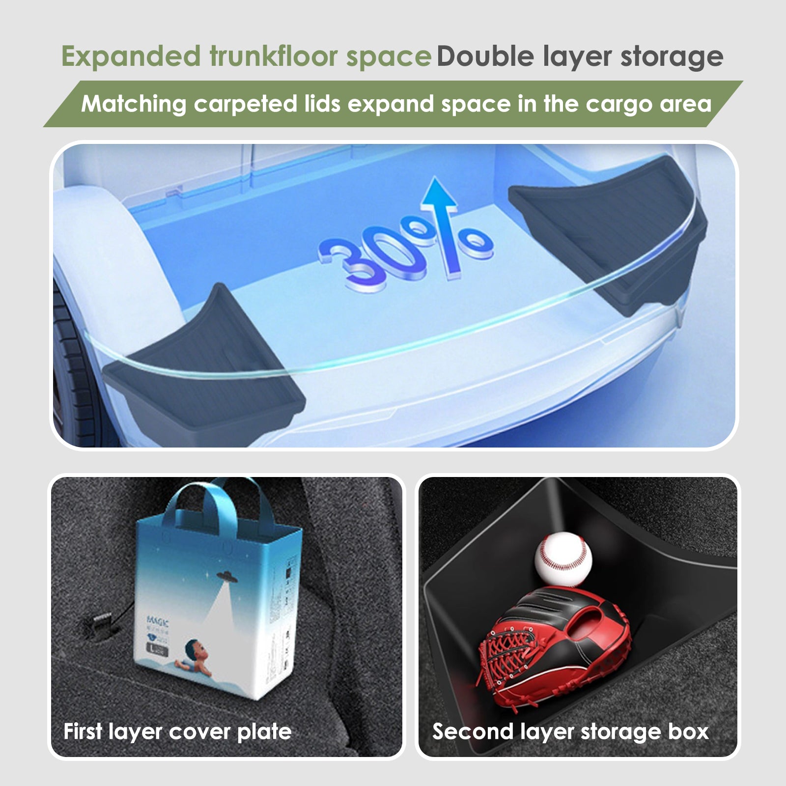 • Rear Trunk Storage Bins Side Box with Carpeted Lid For Tesla Model Y J