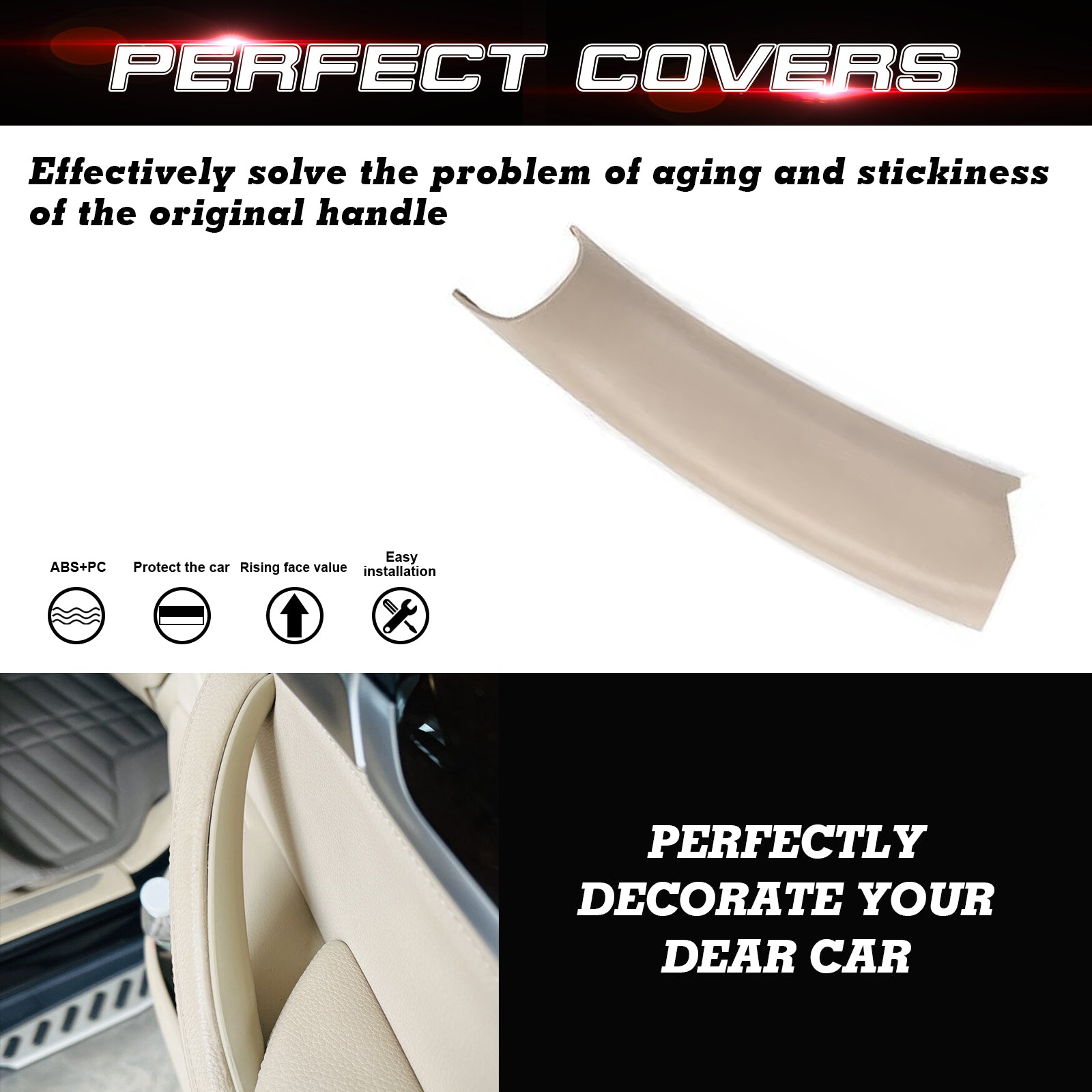 Material: The upgraded door handle cover is made of ABS+PC materials which is more durable, wearable, easy to clean, smoother and solid, improving the texture of the car interior.
