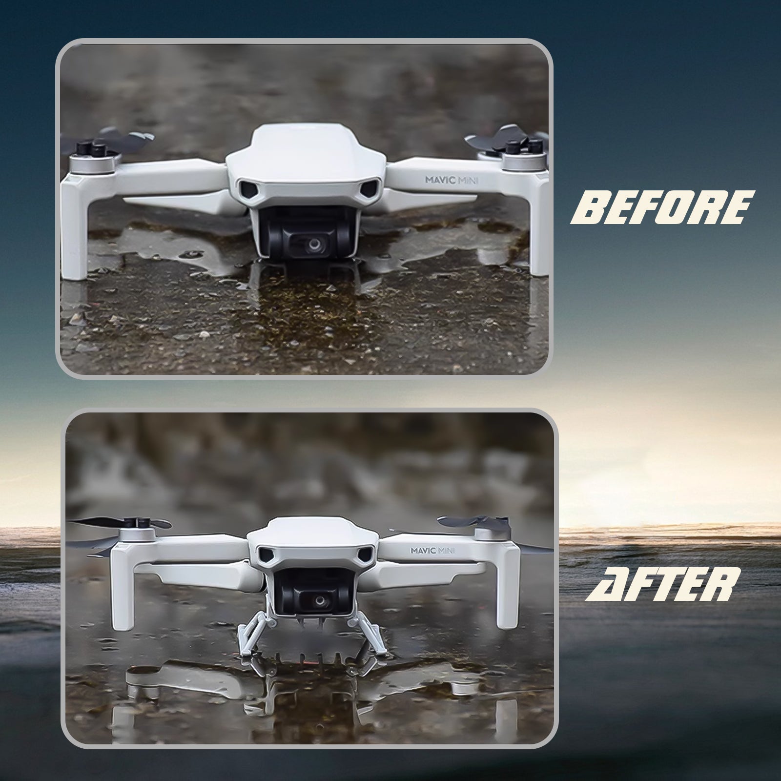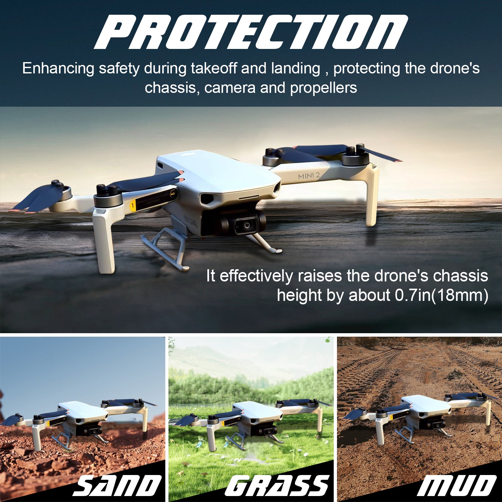 Protection: It effectively raises the drone's chassis height by about 0.7in(18mm), enhancing safety during takeoff and landing on grass, sand, mud, etc, protecting the drone's chassis, camera and propellers