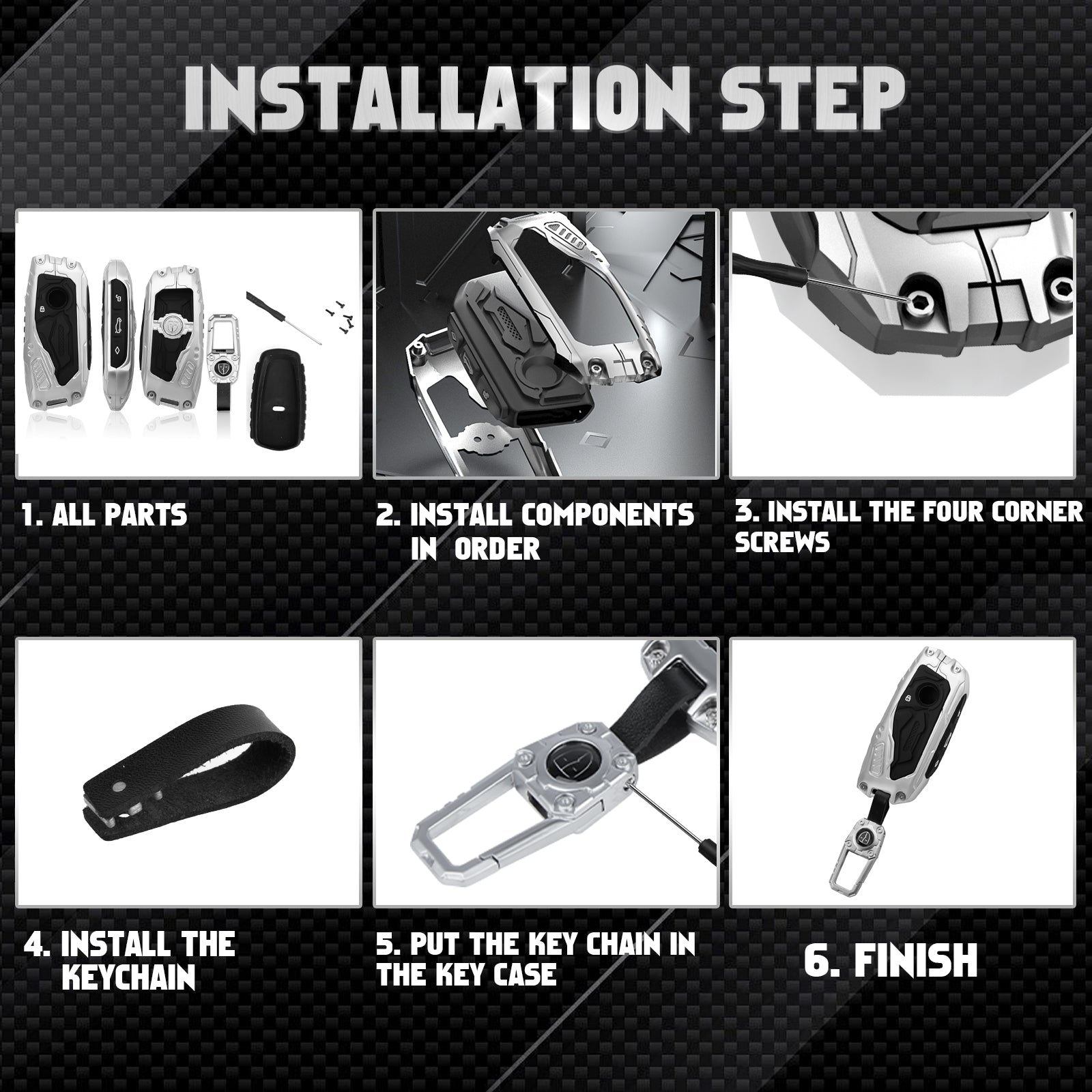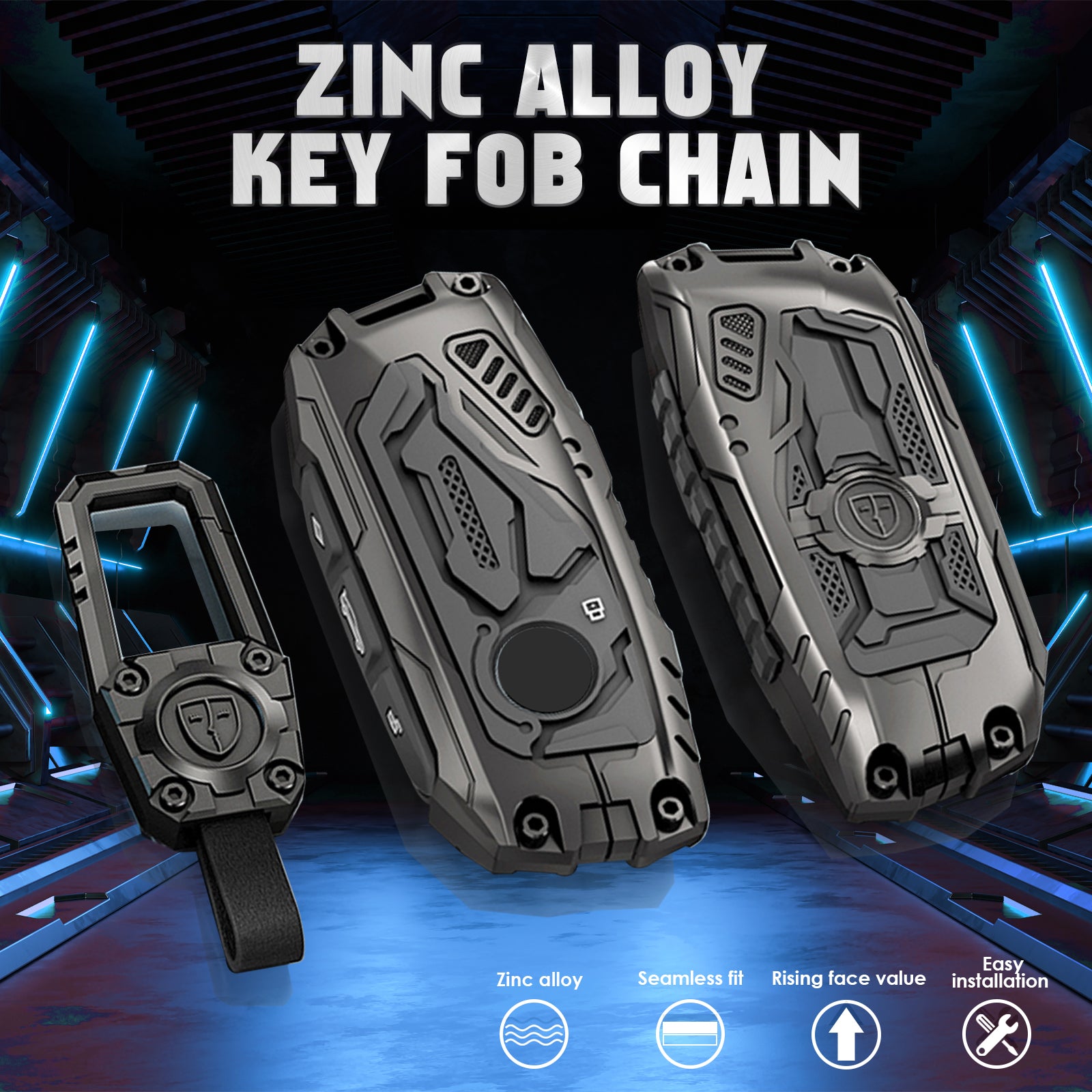 Effortless Screw-In Installation: Experience hassle-free convenience with our easy screw-in design. Simply twist it into place, and you’ll have it securely attached in seconds. Package Included: 1x Zinc Alloy Key Shell ;1x Zinc Alloy Keychian; 3x screws; 1x Screwdriver