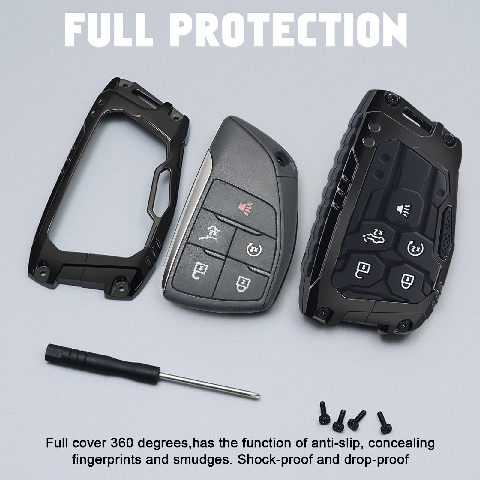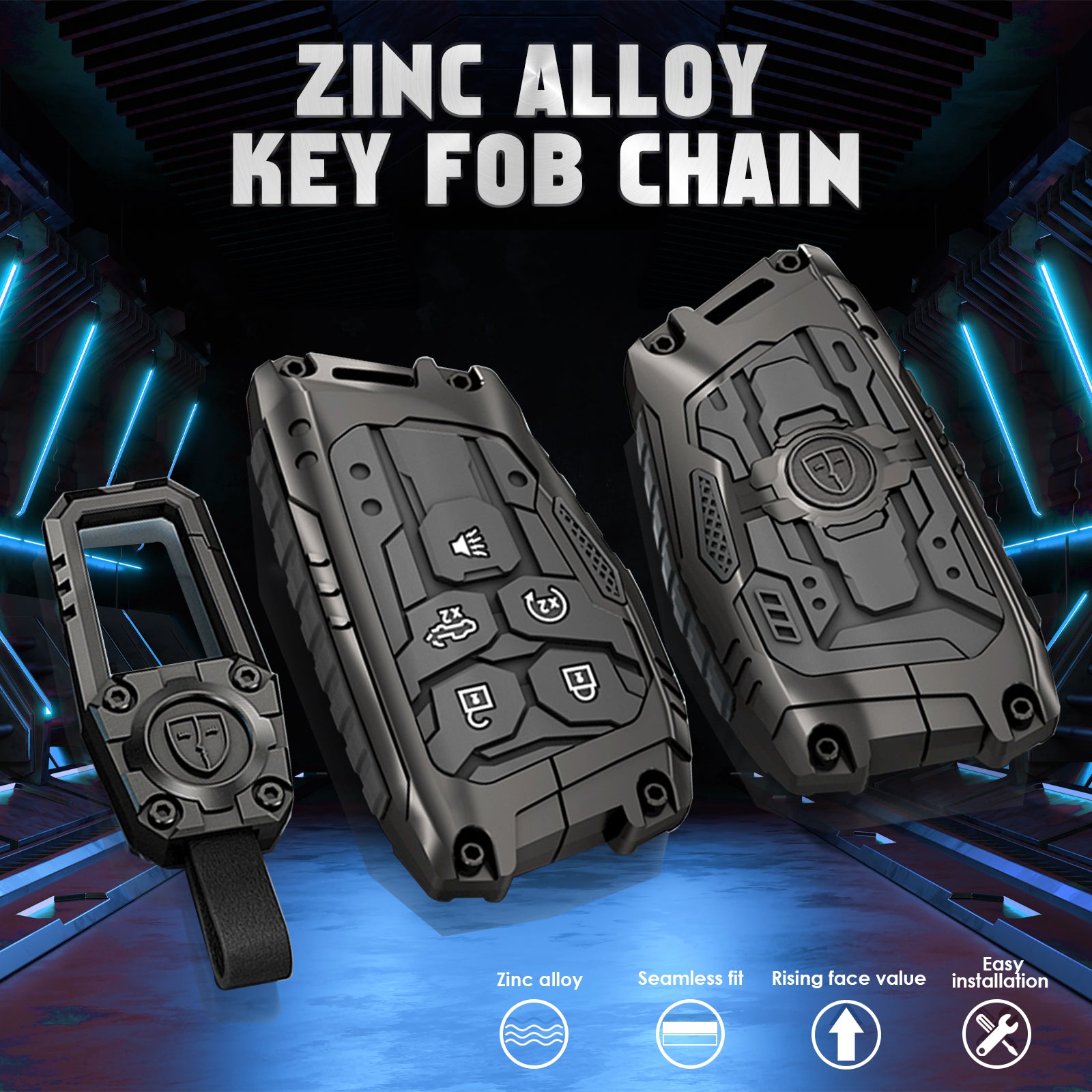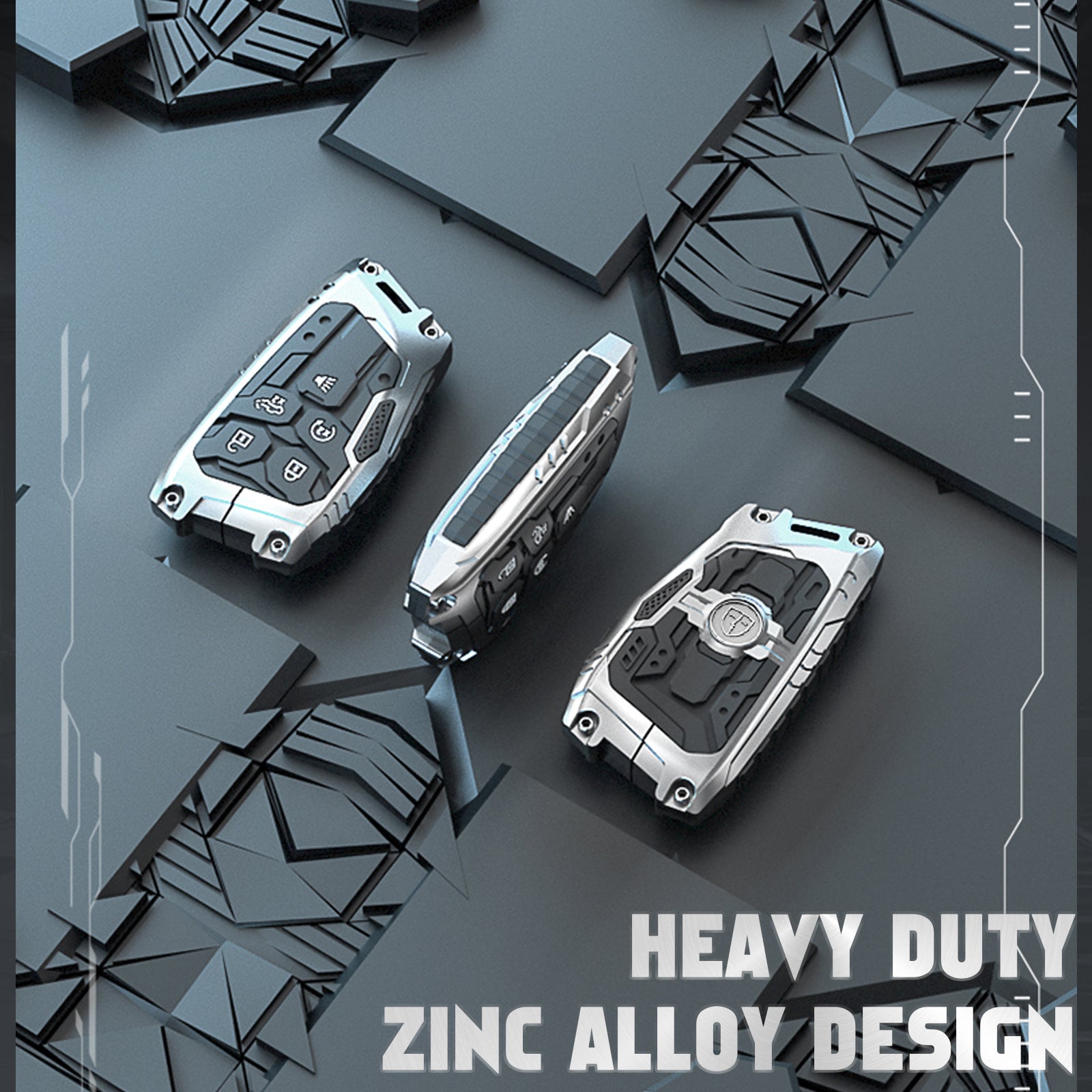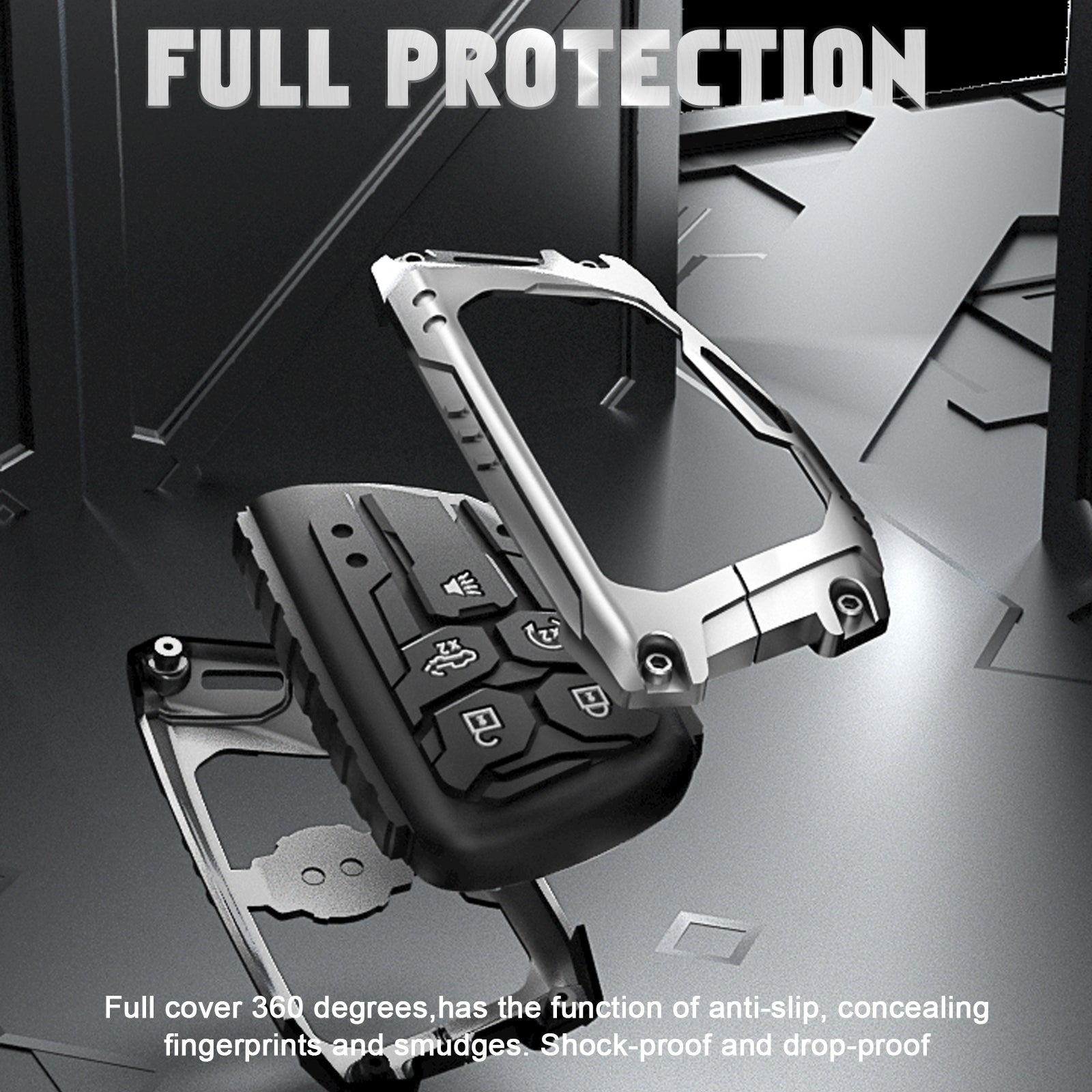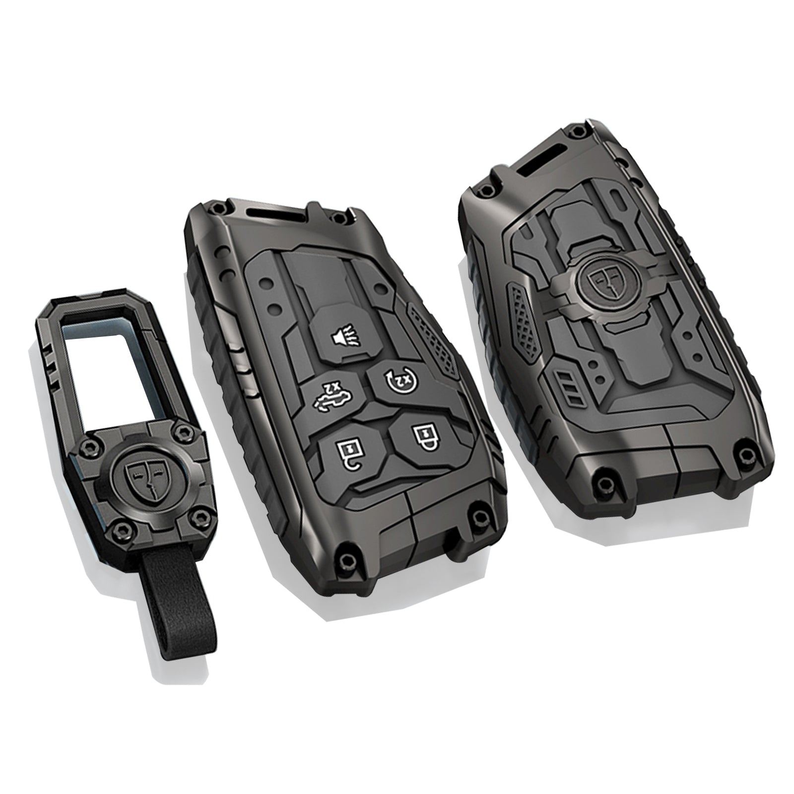 • x xotic tech Mech Style Heavy Metal Key Fob Cover Compatible with Chevy Silverado 1500, GMC Sierra 1500 2022-2025, Chevrolet Tahoe 2024-2025, Zinc Alloy Key Case Protector Shell Keychain