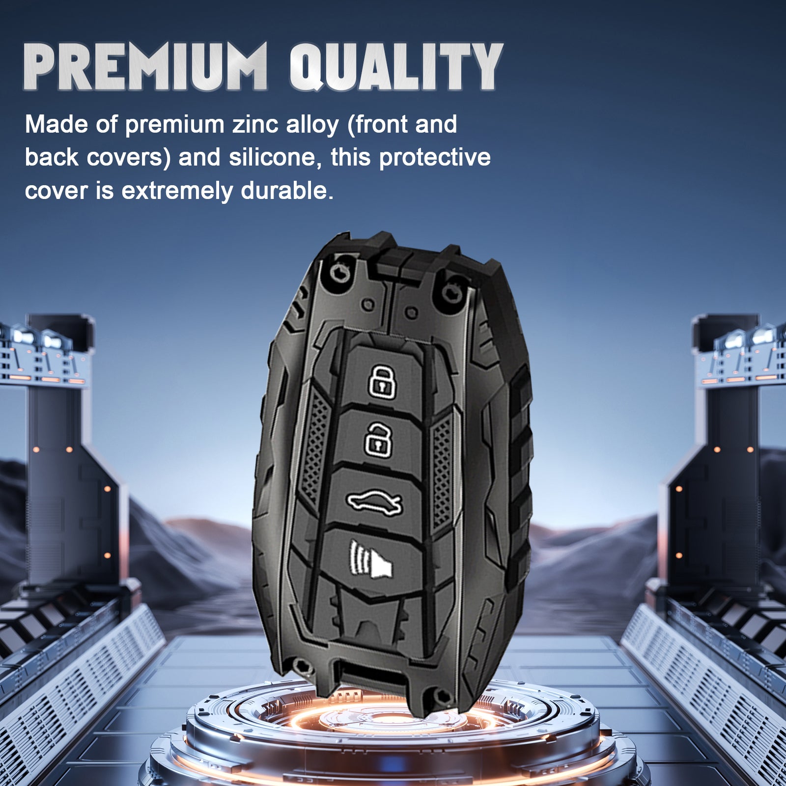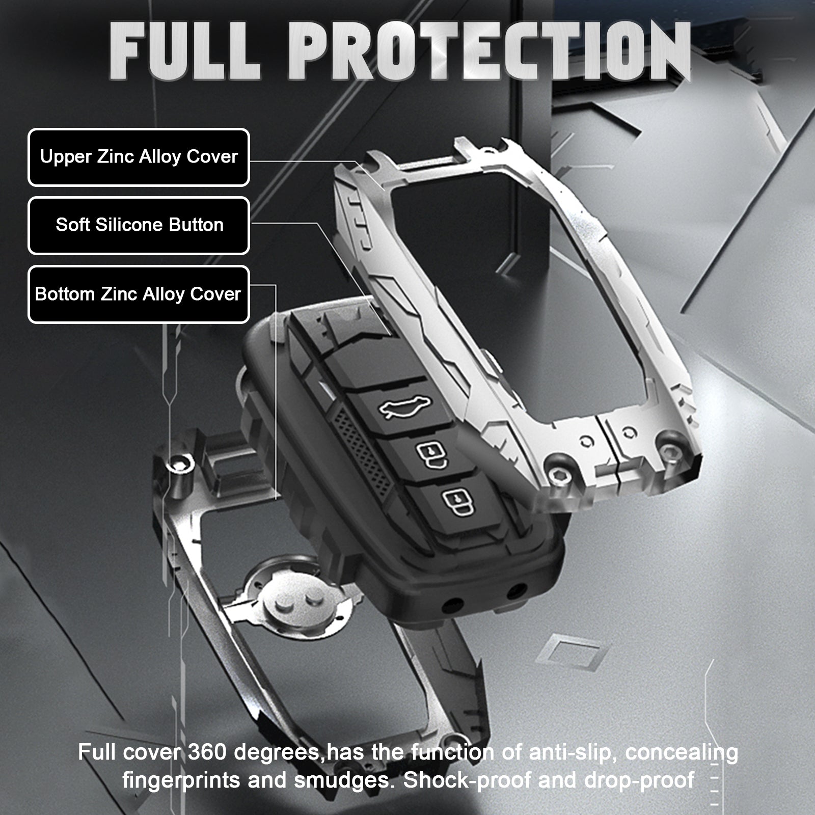 Premium Quality: Made of premium zinc alloy (front and back covers frame) and silicone button cover, this protective cover is extremely durable. It offers an excellent touch and a stylish look. This zinc alloy key fob cover will keep your key fob looking new and premium. This innovative zinc-alloy design blends rugged protection with sleek style, giving your key a modern edge
