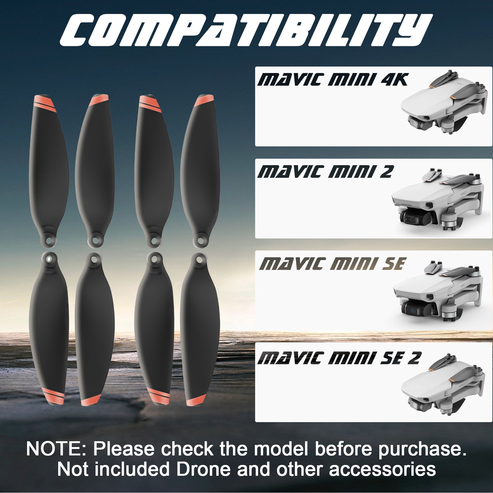 Compatibility: These Propellers Compatible with Mini 2 SE/Mini SE/Mini 2/Mini 4k. Please check the model before purchase