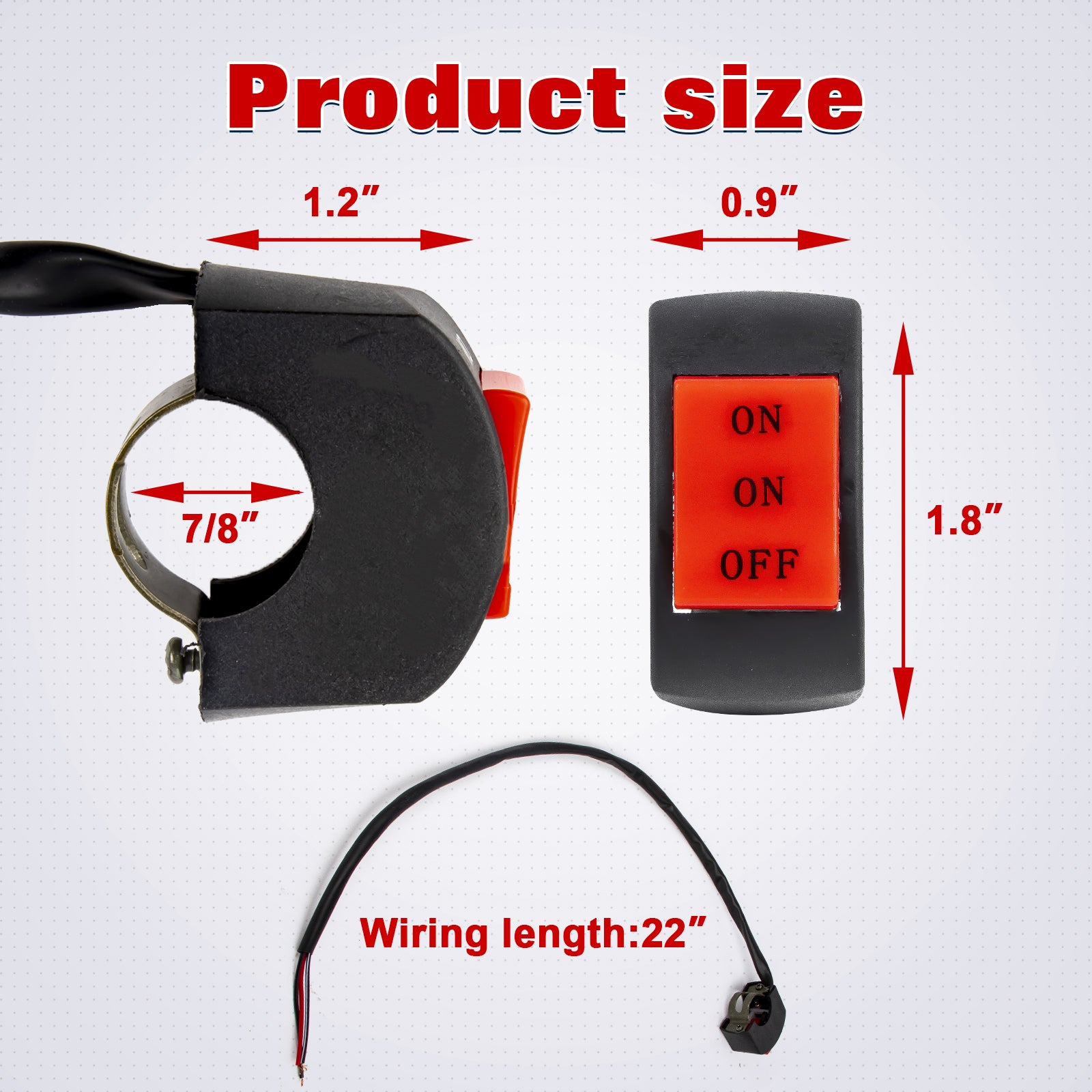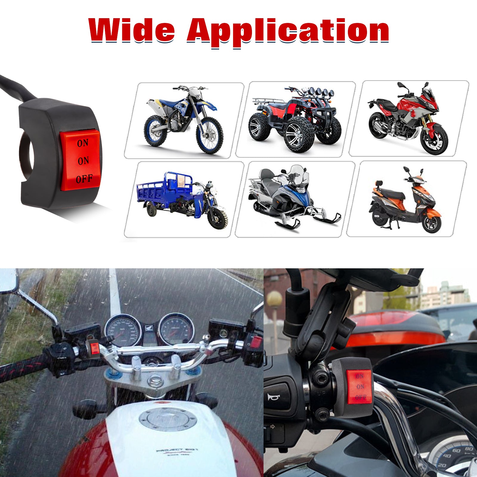 Universal Fitment: The handlebar switch with on/on/off button is fit 7/8" handlebar, can be fit on most of 12V battery installation motorcycles /motorbike/ scooter; Can also be used as ON/OFF switch for fog light, spot light