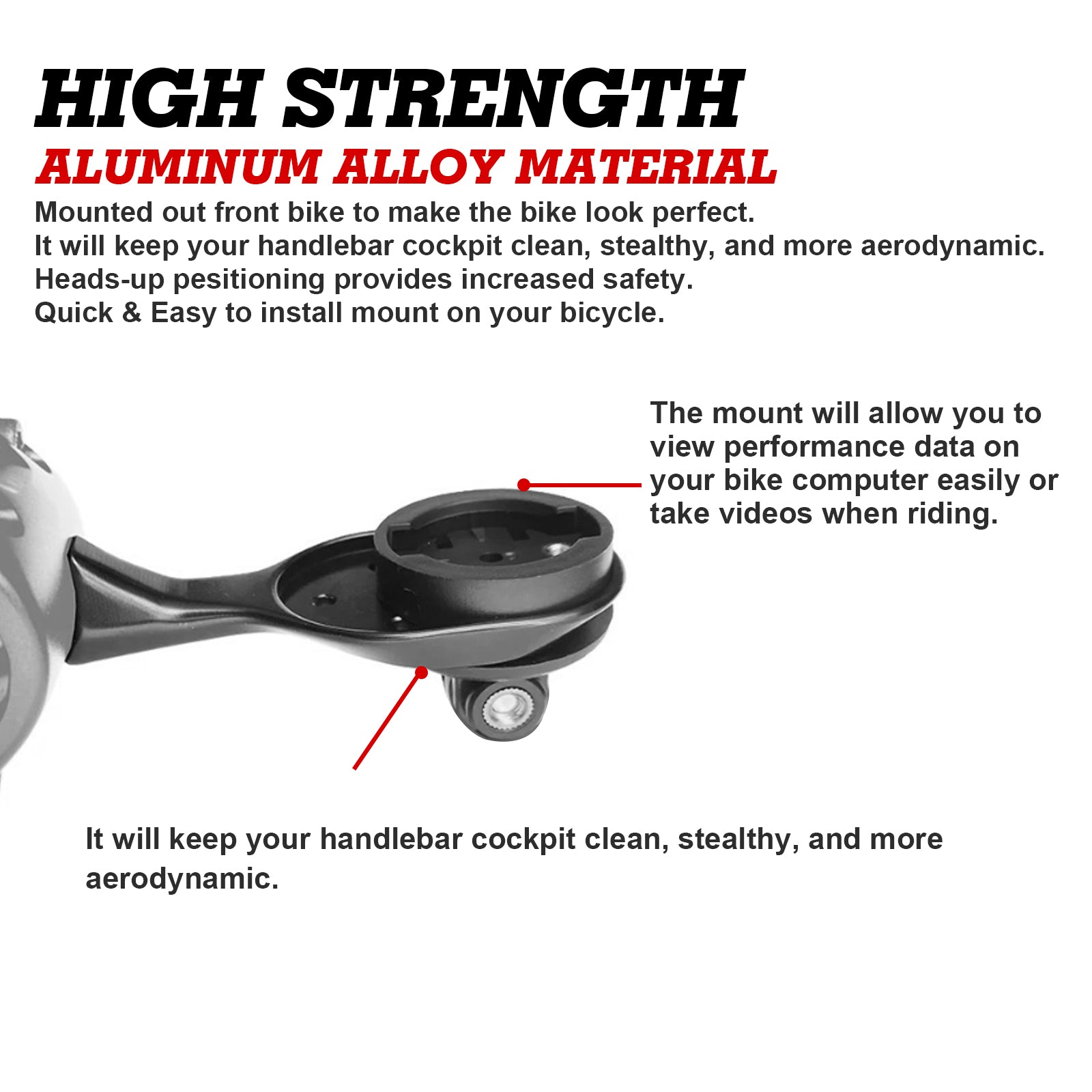 The mount will allow you to view performance data on your bike computer easily or take videos when riding. Heads-up positioning provides increased safety.