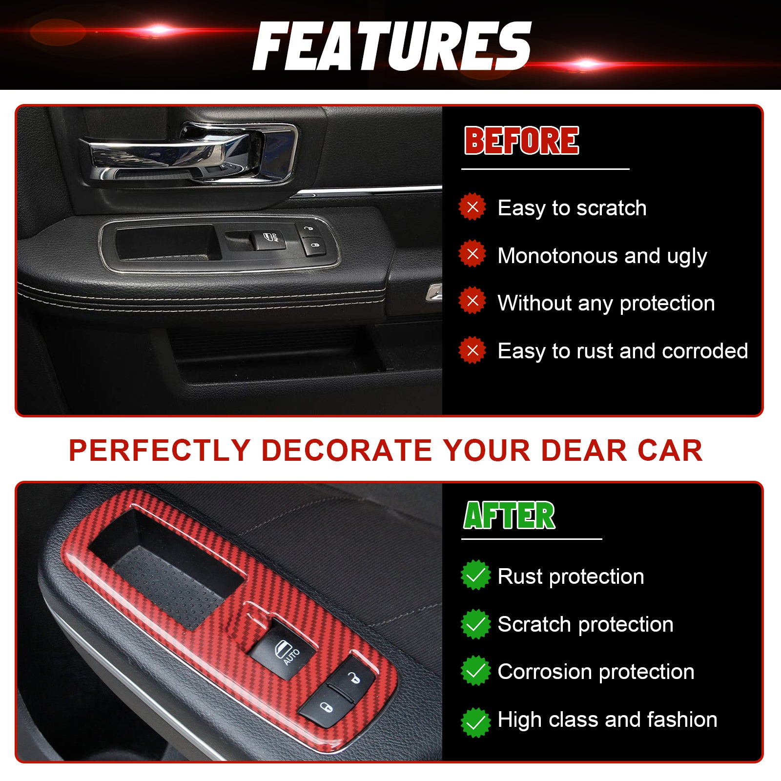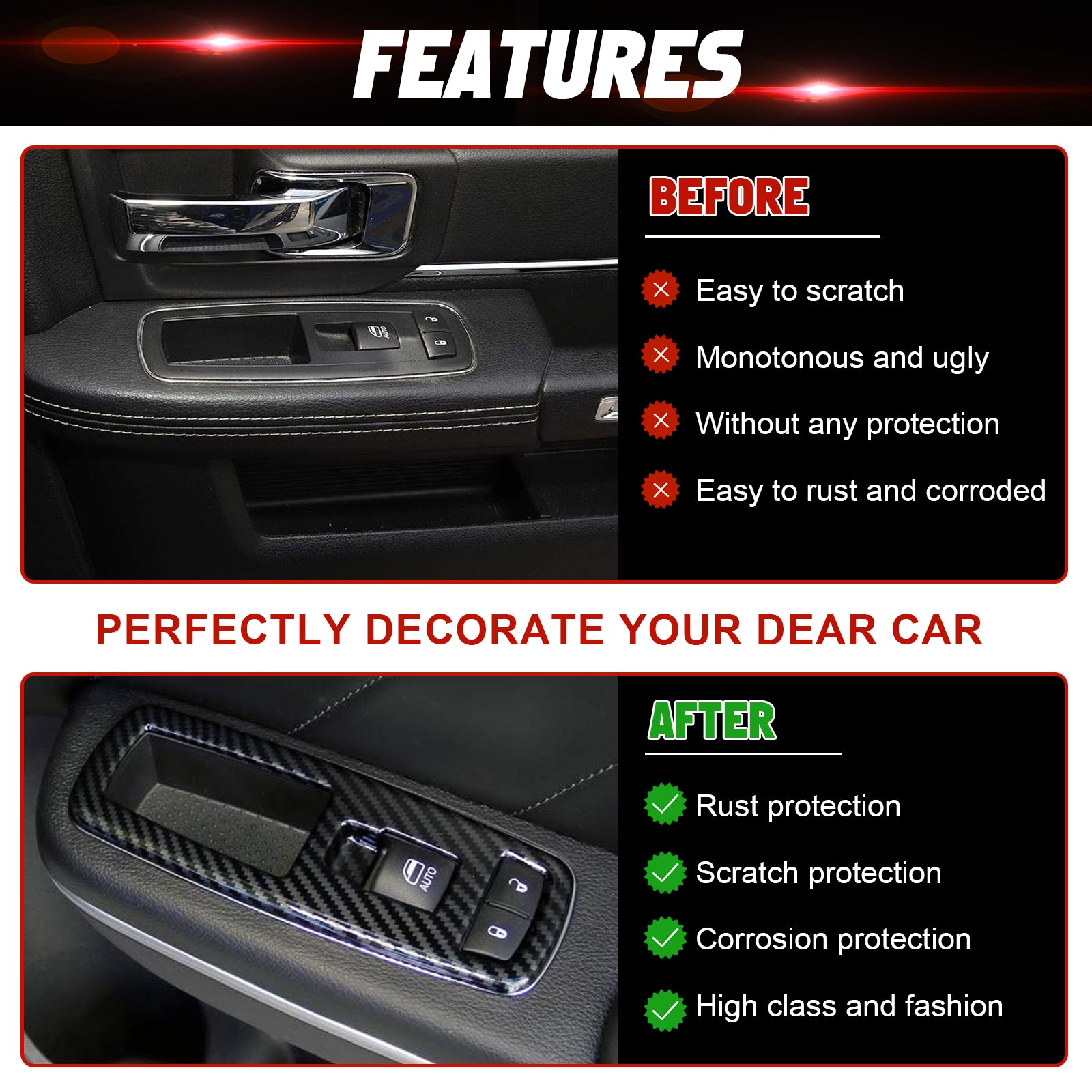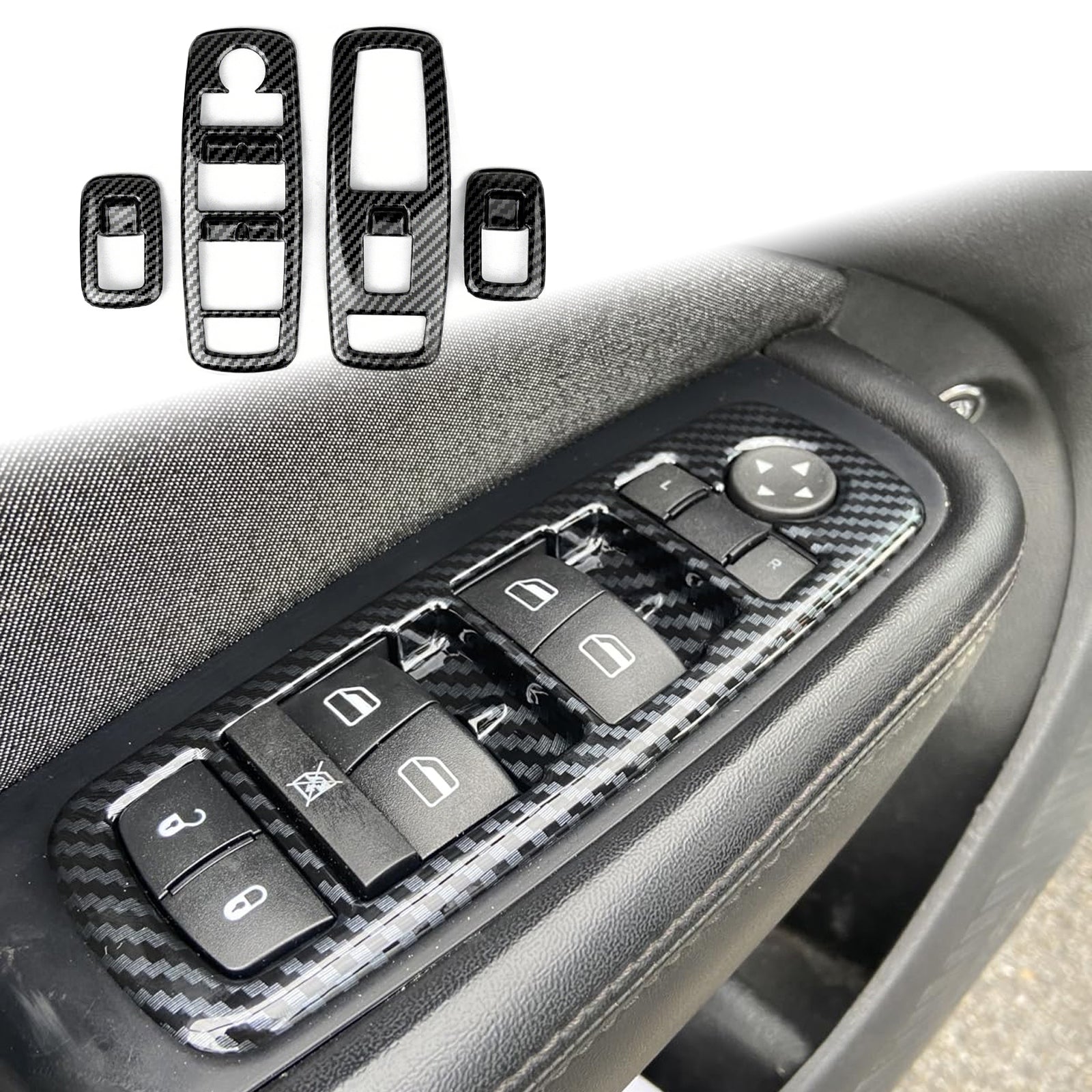 - Carbon Fiber Look Window Lift Switch Button Cover For Dodge Charger Du