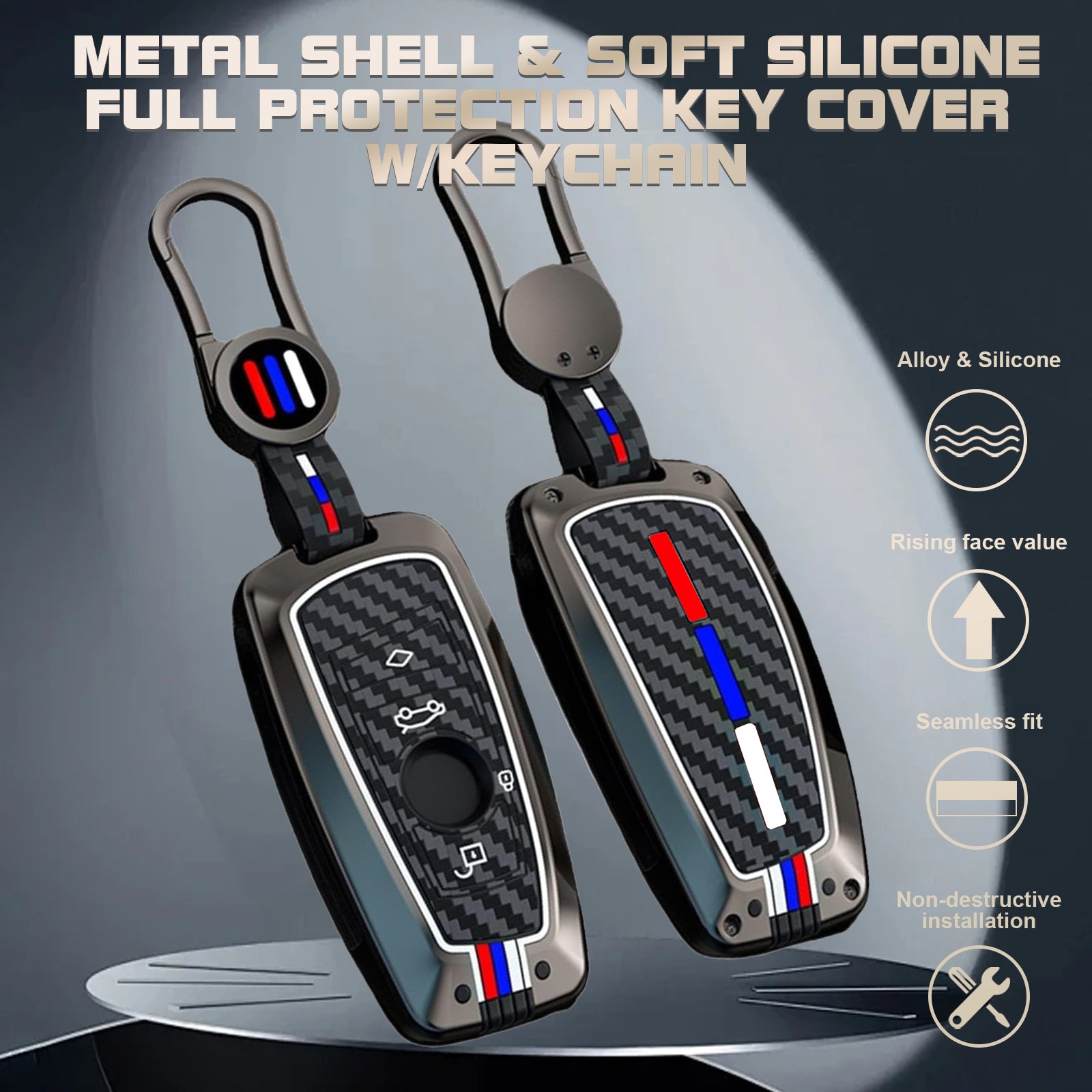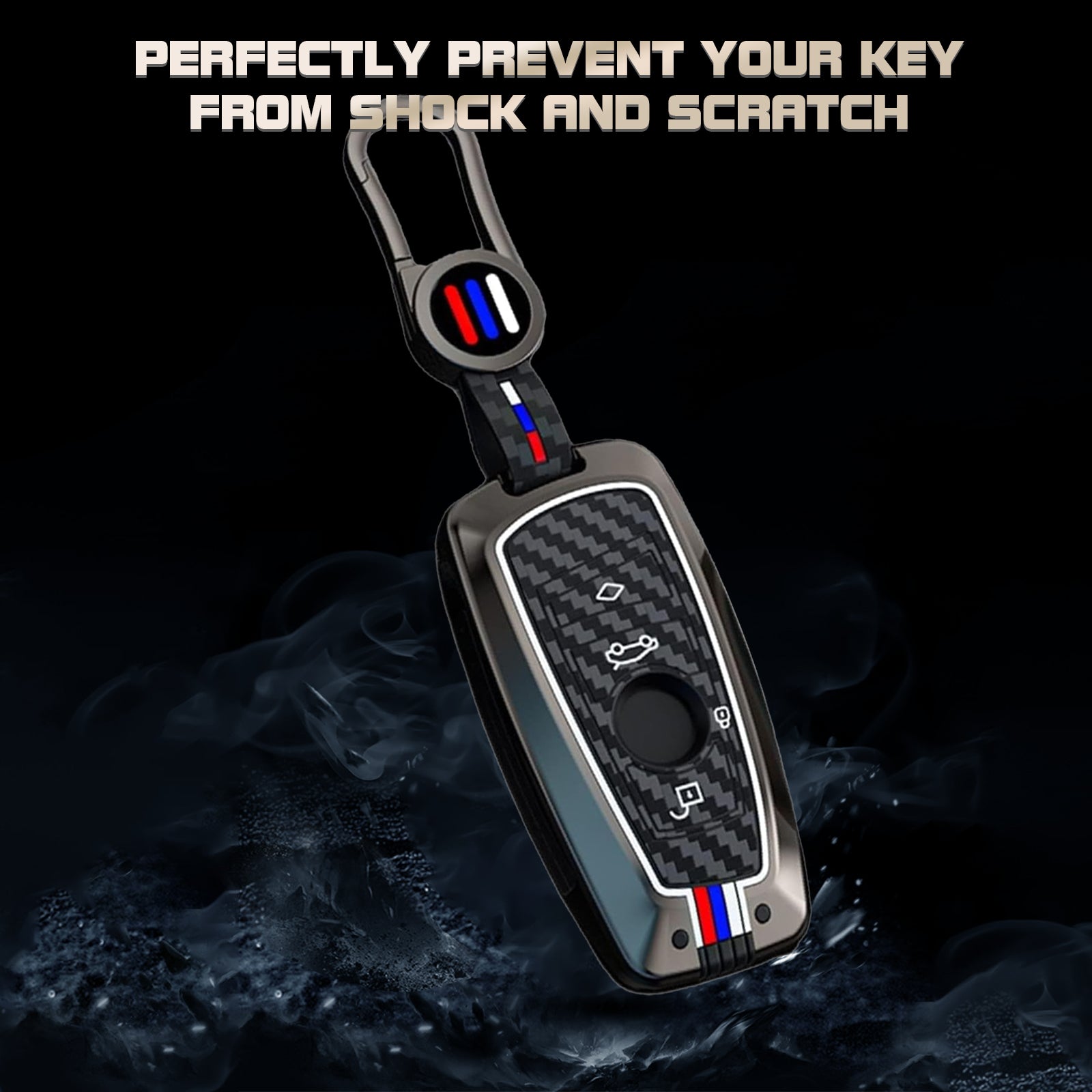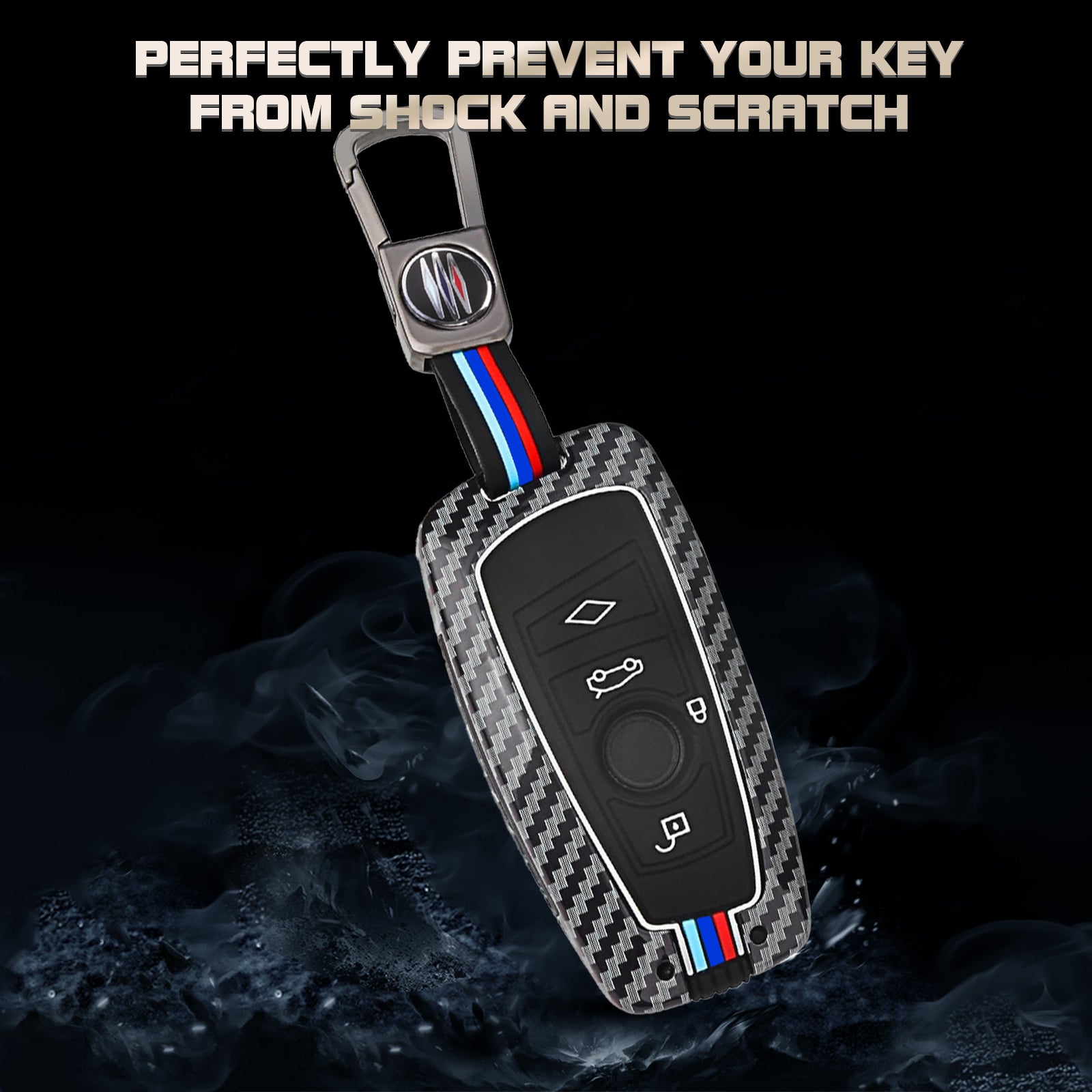 Premium Quality: Our Gunmetal-Finish Key Cover is crafted from high-quality zinc alloy with a soft rubber liner, weighing 2.51 oz to give your remote key fob a premium feel. The silicone skin, featuring a carbon-fiber texture and M Sport stripes, elevates your key's appearance with an extra touch of luxury