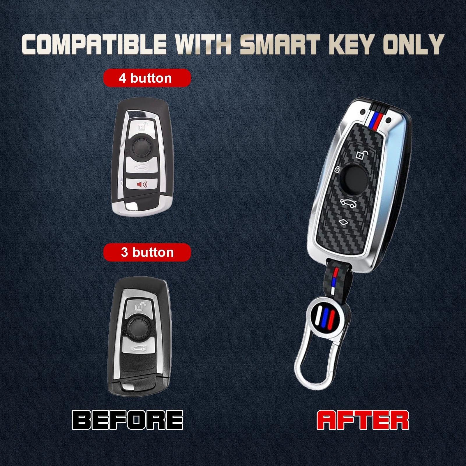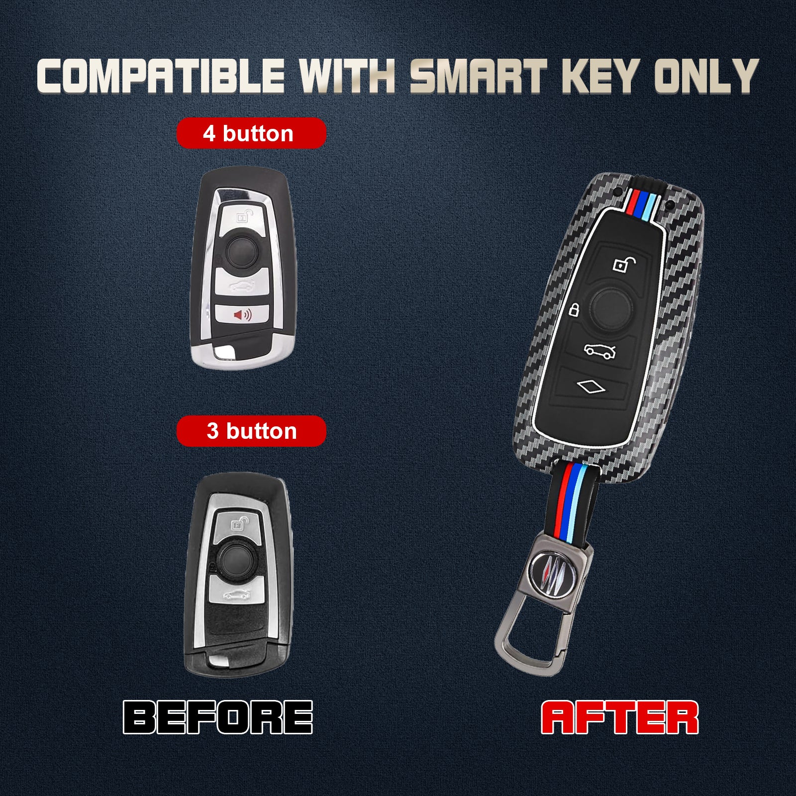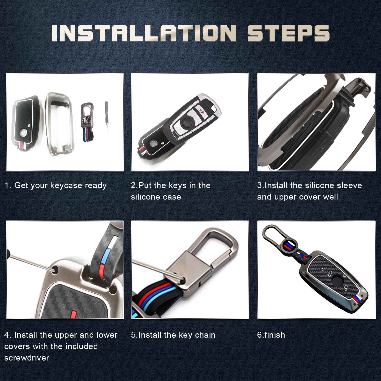 Premium Quality: Our Gunmetal-Finish Key Cover is crafted from high-quality zinc alloy with a soft rubber liner, weighing 2.51 oz to give your remote key fob a premium feel. The silicone skin, featuring a carbon-fiber texture and M Sport stripes, elevates your key's appearance with an extra touch of luxury