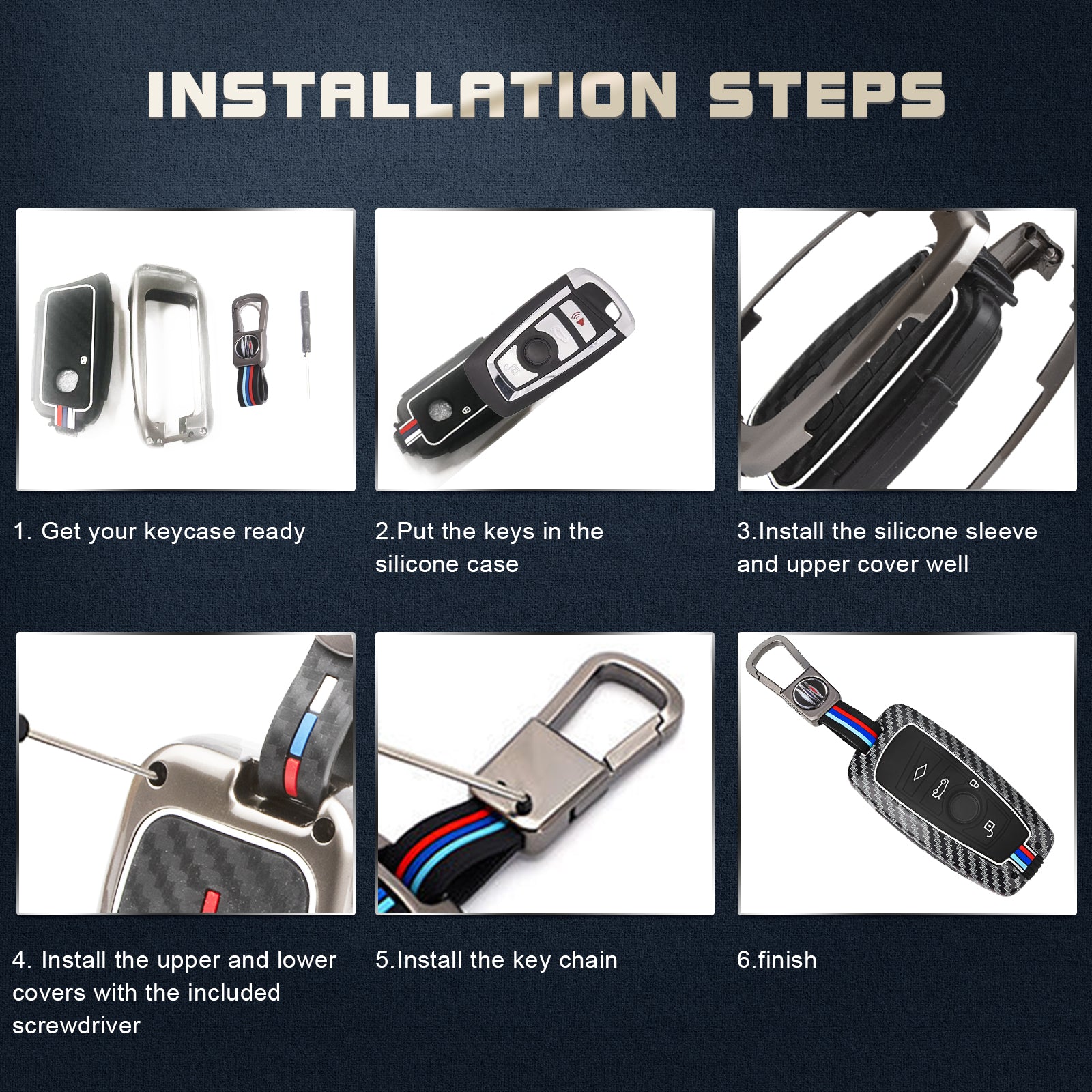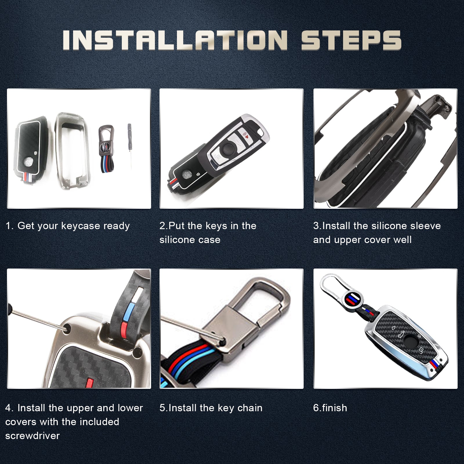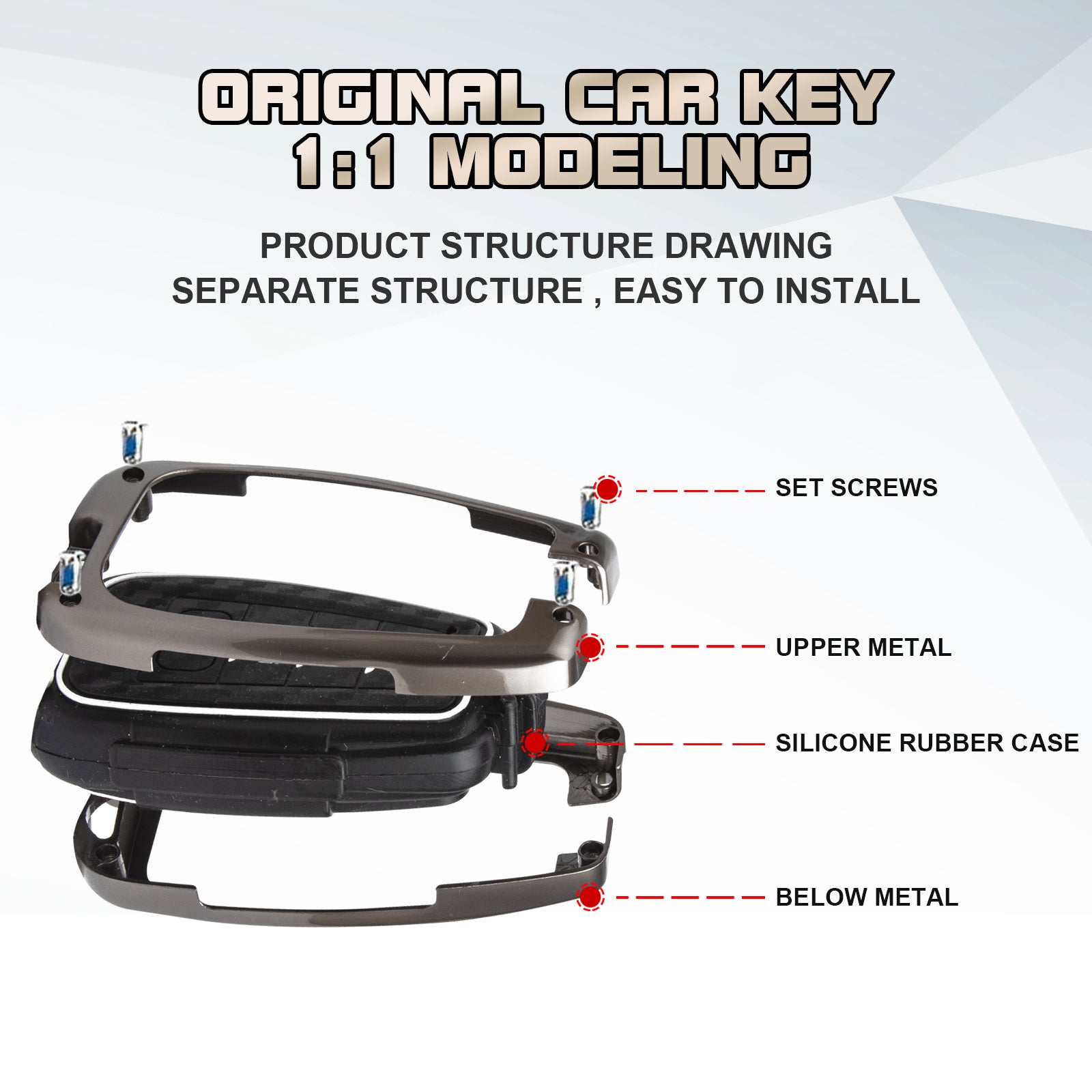 Easy to Install: Installation takes only a few minutes; once fitted, the shell instantly elevates your key's appearance. All required hardware is included. (Note: There are no holes in the silicone tape, you only need to tighten the two screws directly to complete the installation) Package Included: 1x Rubber Smart Key Shell, 1x Zinc Alloy Key Shell, 1x Zinc Alloy Keychian, 6x Screws, 1x Screwdriver