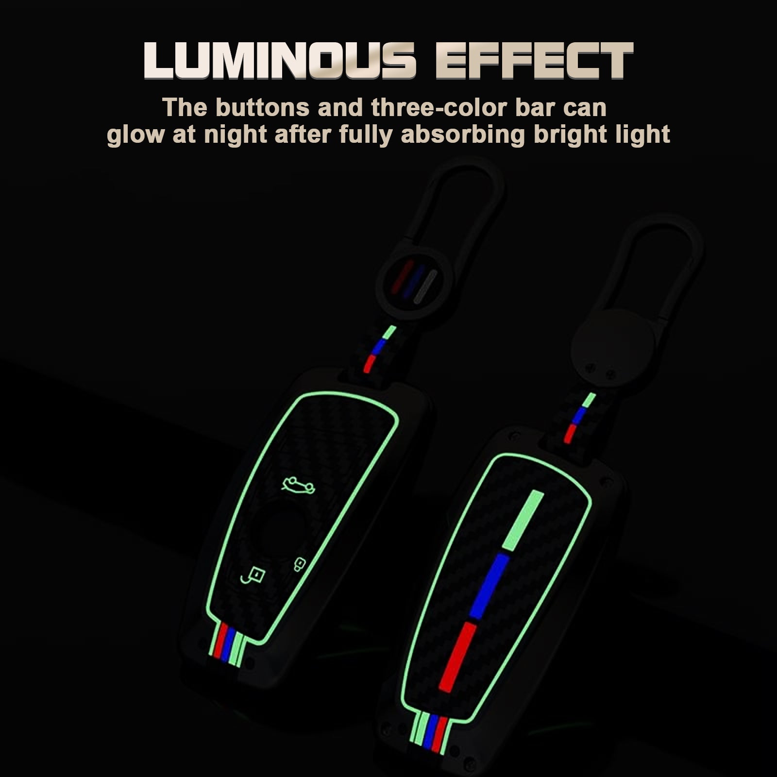 Luminous Design: The silicone cover glows in the dark after it has absorbed enough light—sunlight works well. The keychain hook has an arc-shaped design that lets you clip it to your belt without snagging on clothing. Its quick-release spring mechanism can be pressed thousands of times without breaking. Note: this case blocks access to the emergency key; if that's an issue, please choose another product