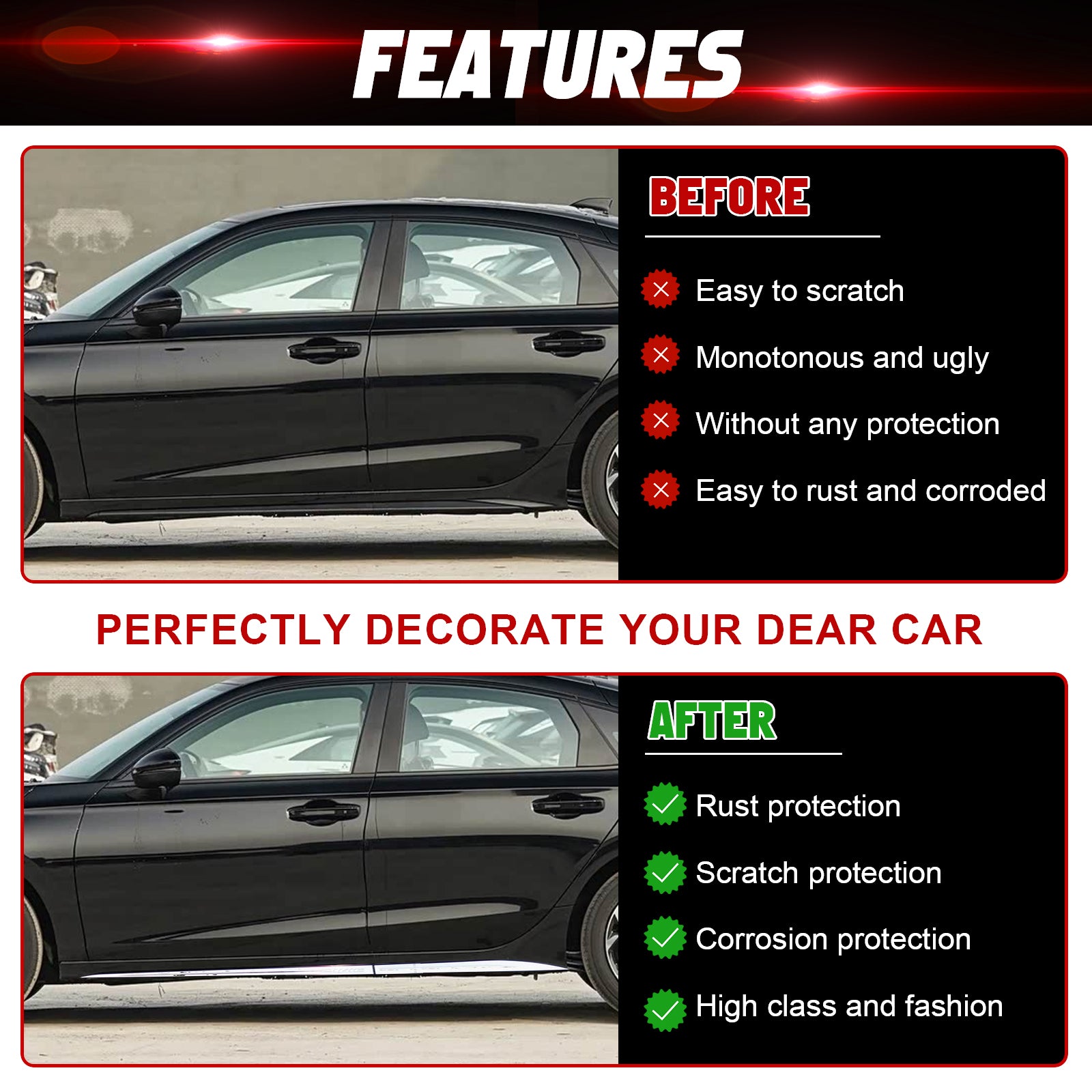 - Specially design for Honda Civic Side Door decoration purpose