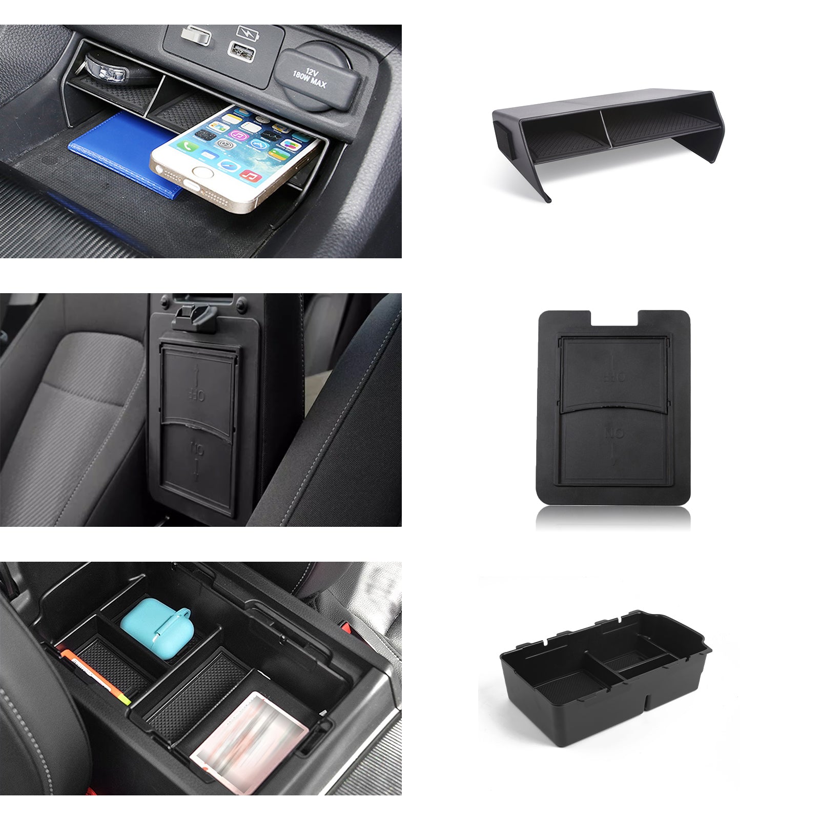【Extra Storage layer】The installation of those storage trays divide the space into several compartments, not only keep using the original console box, but also increasing storage space.You can put larger items such as pens, smartphones, wallet, lighter, keys,tissue, lipstick, cigarette in the lower organizer,and put the small things like cash ,credit card or other personal private belongings in the upper storage box.Nobody can find your personal stuff stored there.