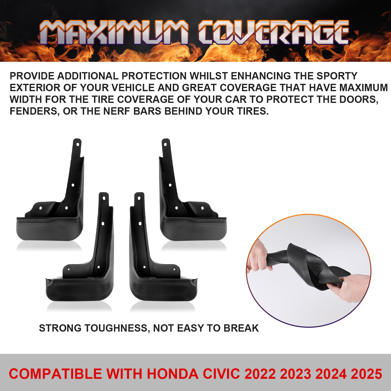 - Compatible with Honda Civic 2022 2023 2024 2025. It doesn't fit cars with side skirt or any modifications; It doesn't fit Hatchback