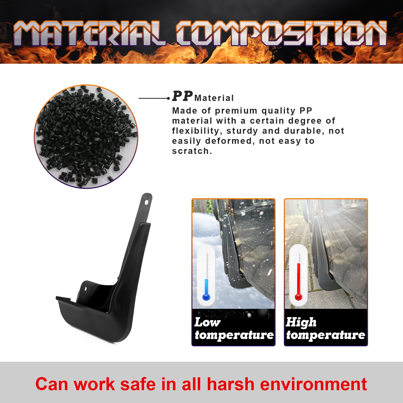 Premium Quality: Made of premium quality PP material with a certain degree of flexibility, sturdy and durable, not easily deformed, not easy to scratch and can work safe in all harsh environment. Instantly enhance your car's look with a sleek, factory-finish style that makes it stand out from the crowd