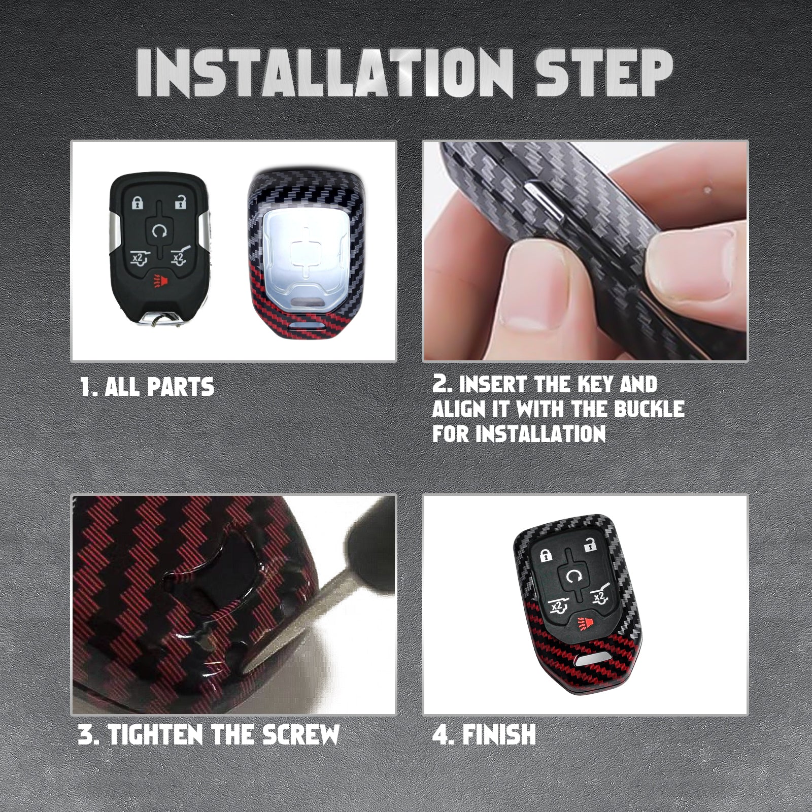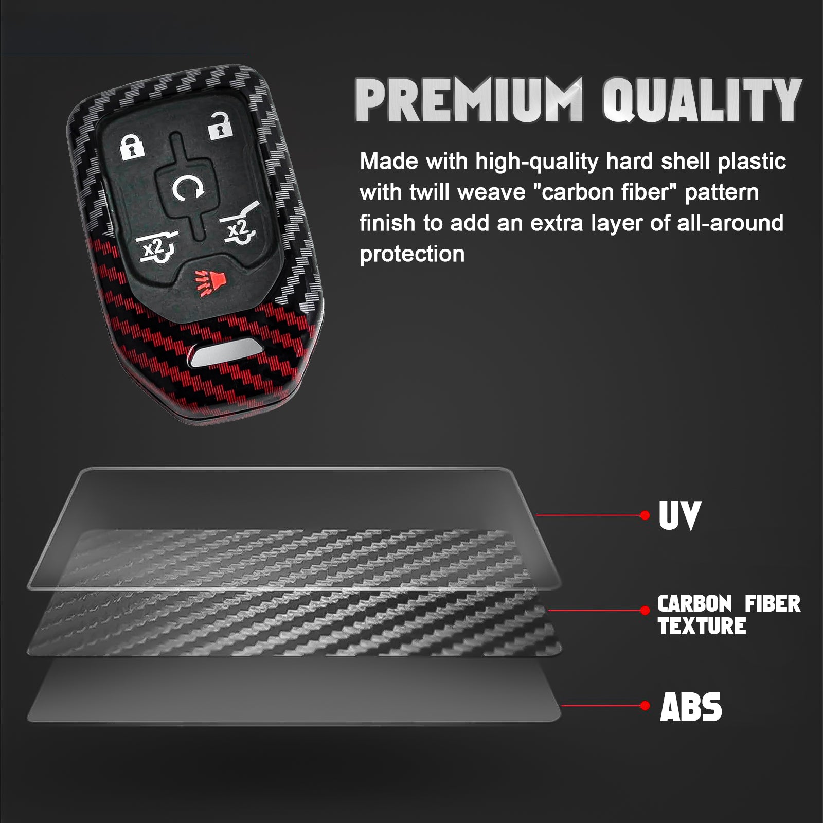 Premium Quality: This ABS plastic hard-shell keyfob case features a durable, glossy finish with a red and black carbon-fiber pattern, offering a more stylish and resilient alternative to silicone or rubber fob